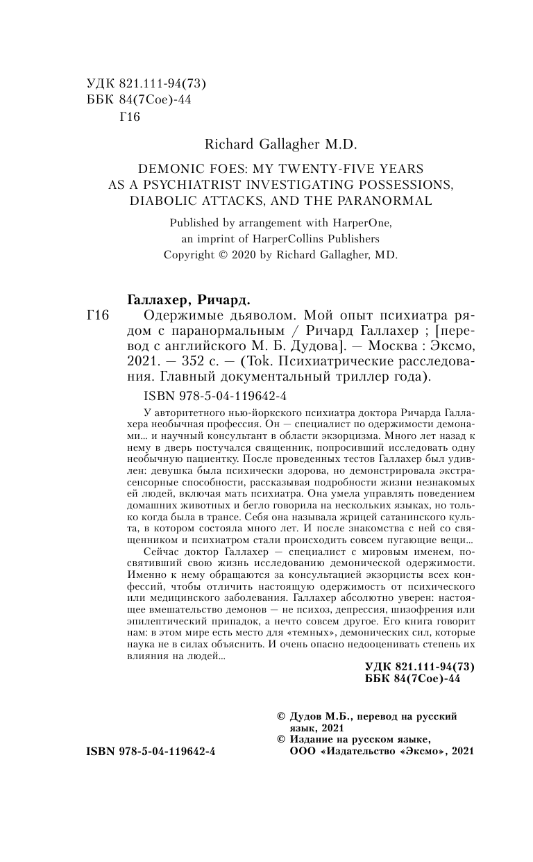 Сервис сравнения цен СкидкаГИД предлагает сравнить цены на товар «Книга: Одержимые дьяволом. Мой опыт психиатра рядом с паранормальным (Рори Галлахер); Эксмо, Inspiria, Редакция 1, 2021»