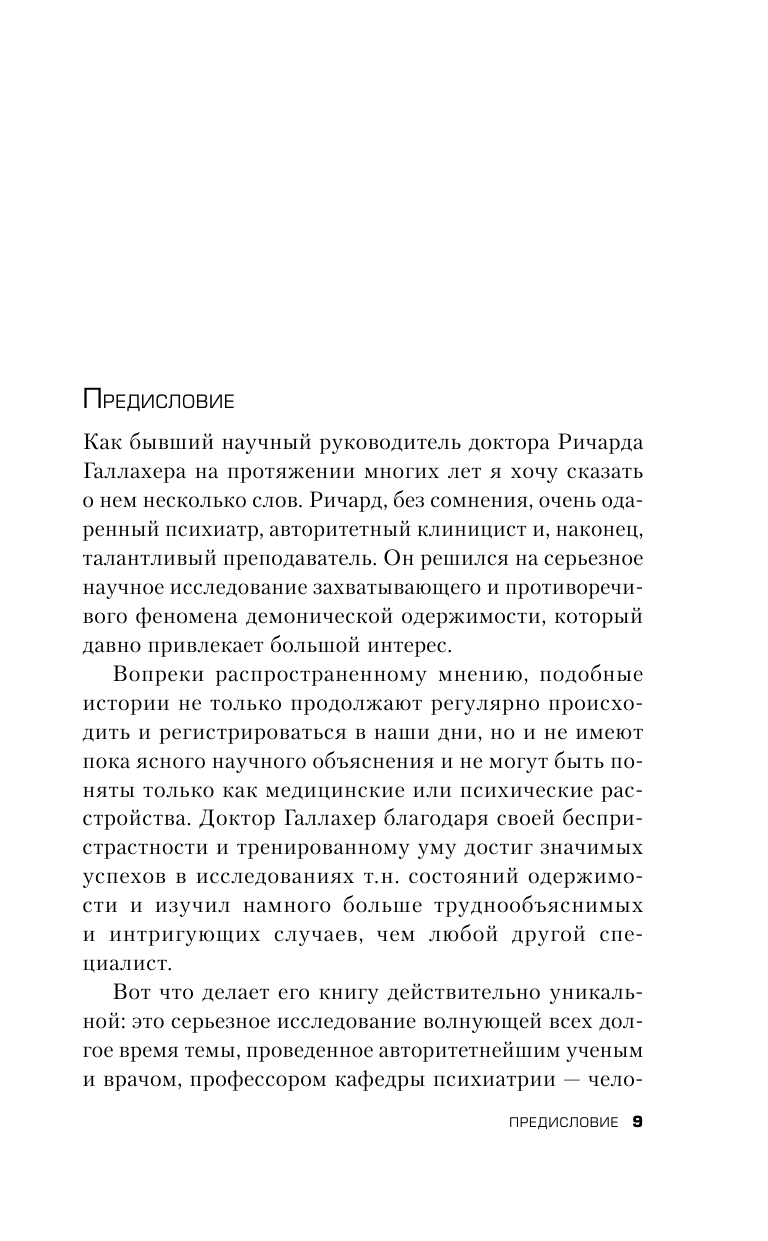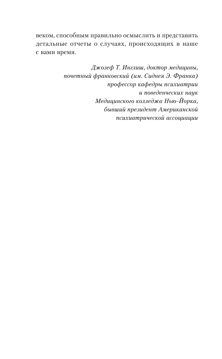 Одержимость демонами – миф или реальность? Интригующий вопрос, на который не нашлось пока однозначного ответа. Многое в этой книге может заставить сомневаться в том, что это можно отнести только к области психиатрии, особенно, когда такое заявляет признанный эксперт в этой области. Даже если отбросить научный аспект, в книге интересны сами по себе различные случаи одержимости, экзорцизмов и психиатрических расстройств.