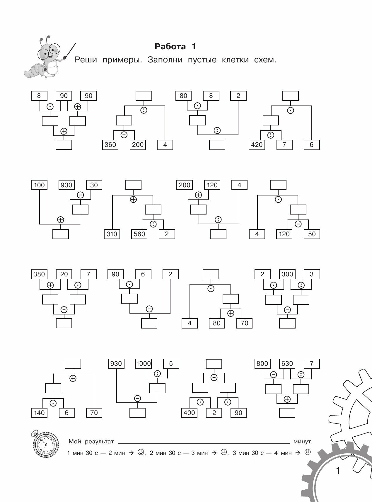В пособии в виде схем представлены примеры на сложение, вычитание, умножение и деление в пределах 1000. Их решение - отличный тренинг для формирования навыка выполнения всех устных вычислений, предусмотренных школьной программой.
