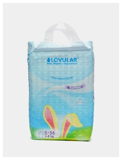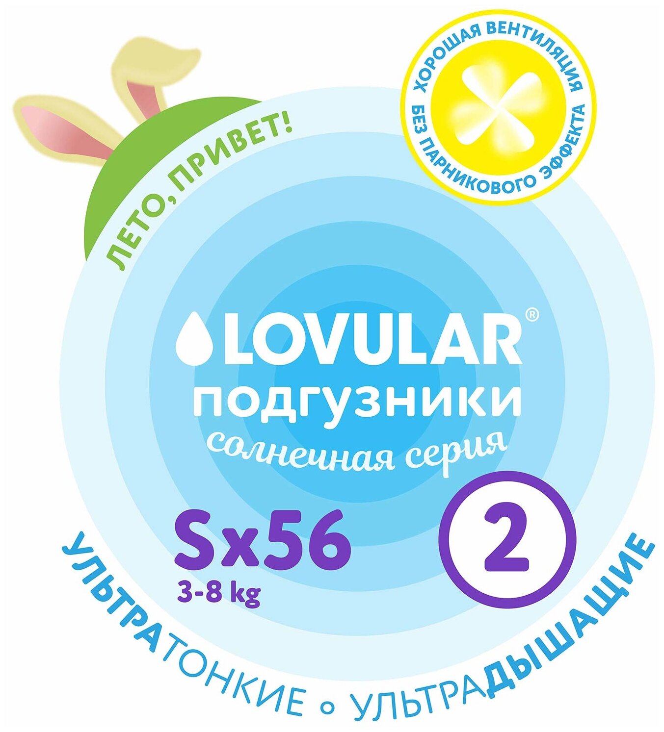 Подгузники Lovular Солнечная серия S 3-8кг 56шт (размер: 2/S (3-6 кг))
