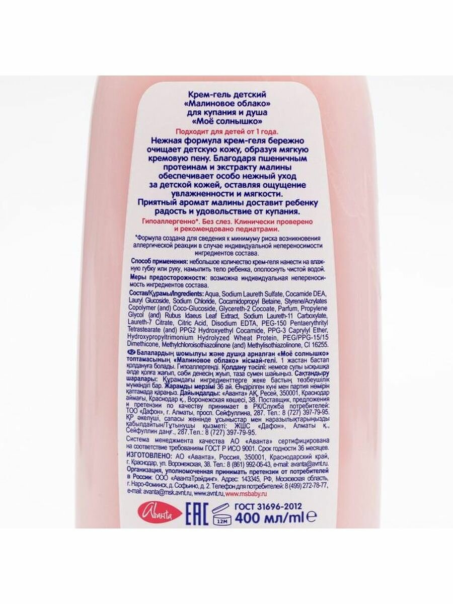 Крем-гель Мое Солнышко Малиновое облако 400мл Моё солнышко