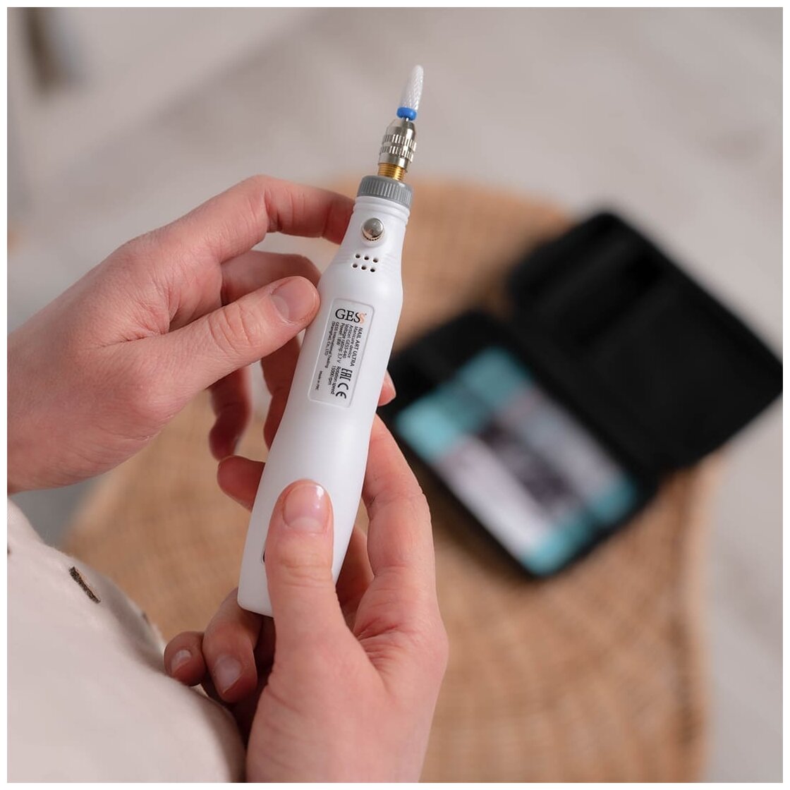 Беспроводной маникюрный прибор предназначен для профессионального маникюра и педикюра в домашних условиях. С поддерживать ваши ногти в ухоженном состоянии станет легче, ведь его легко брать с собой. Данная модель имеет встроенный аккумулятор, который работает в беспрерывном режиме 2 часа. Бережно и эффективно удаляет кутикулу, идеален для обработки вросших, утолщенных и ороговевших ногтей, мозолей, натоптышей и огрубевшей кожи, есть насадка для снятия гель-лака. В комплект входит 12 насадок (9 алмазных и 3 керамических), выполняющих различные функции по обработке ногтевой пластины и кутикулы. 3 скорости вращения для комфортного использования: 1 - 5000 ,2 - 10000, 3 - 15000 об/мин. Втулки разного диаметра в комплекте позволят использовать не только насадки, что идут в комплекте, но и докупить другие, которые могут дополнительно понадобятся. В наборе 4 втулки. Для удобства хранения и перевозки упакован в компактную сумочку.