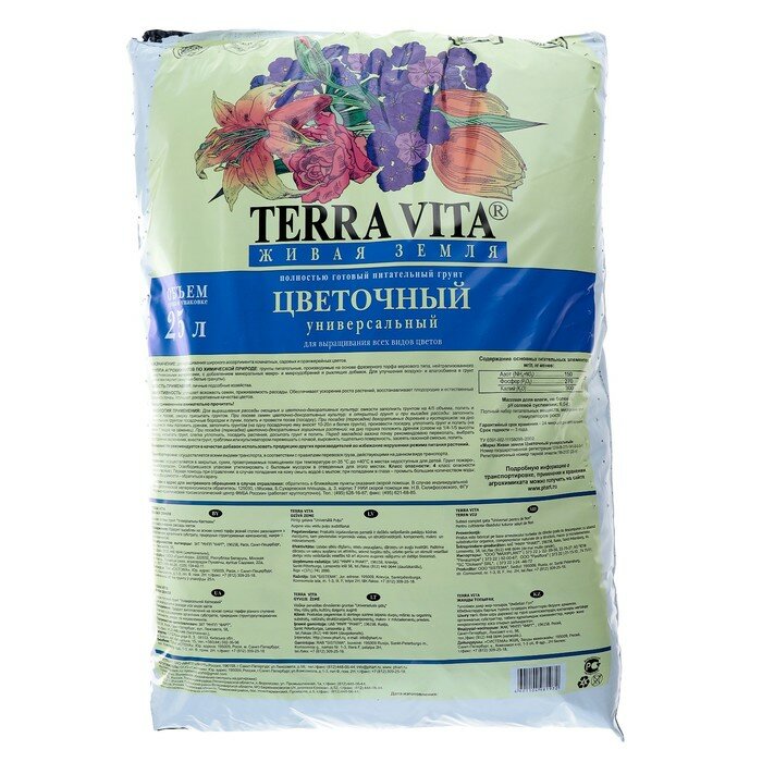 Грунт Цветочный (Terra Vita - Живая земля), 50л обзор СГС0092 бренд производитель ФАРТ МНПП (Россия)