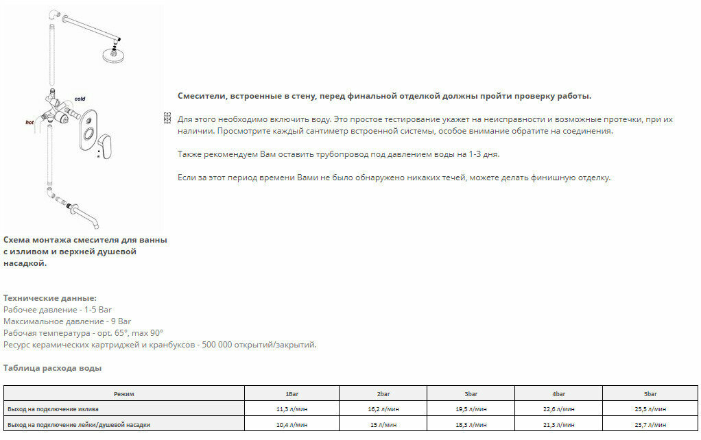 | Оснащение | дивертор, скрытая монтажная часть |