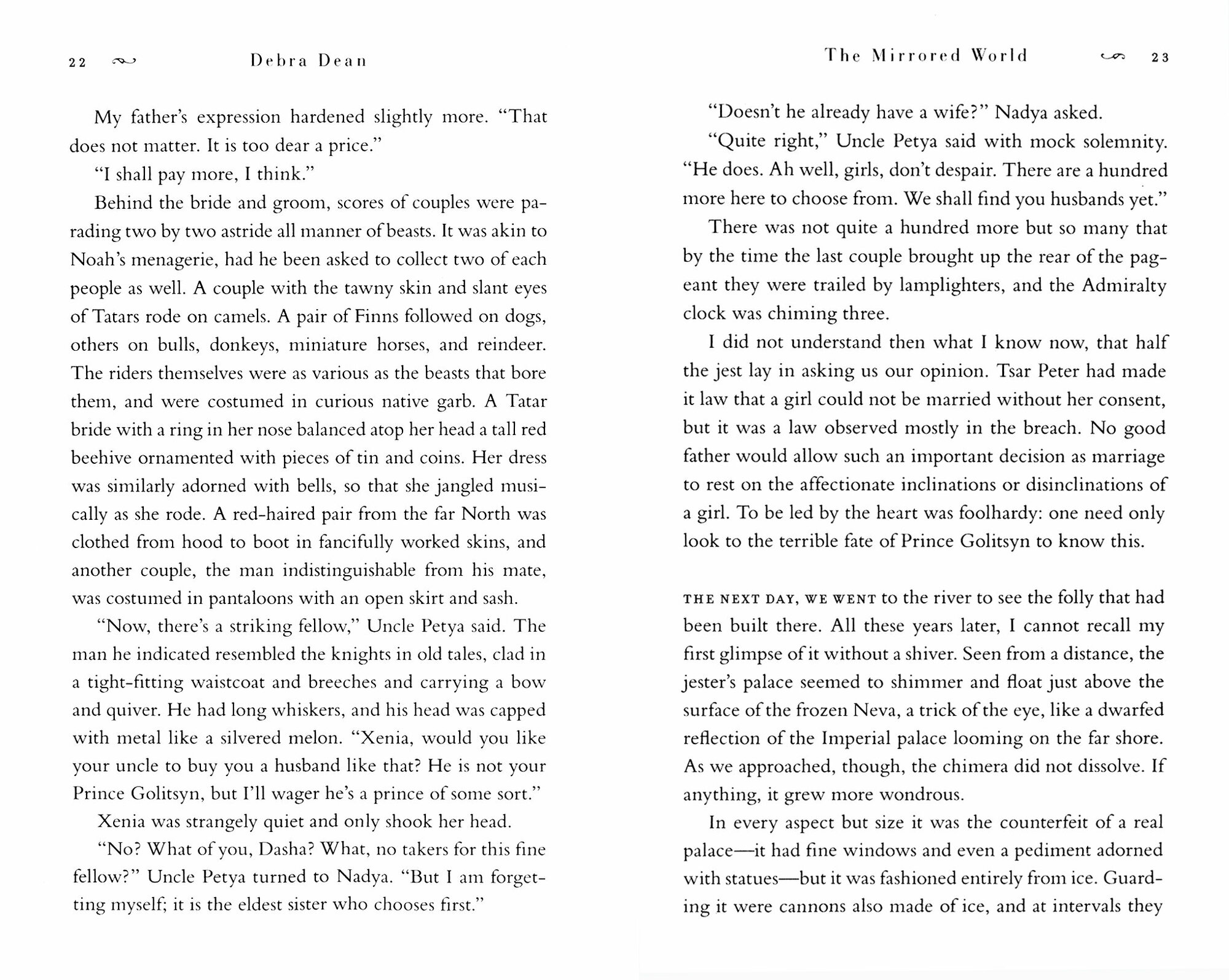 The critically acclaimed author of The Madonnas of Leningrad (“Elegant and poetic, the rare kind of book that you want to keep but you have to share” —Isabel Allende), Debra Dean returns with The Mirrored World, a breathtaking novel of love and madness set in 18th century Russia. Transporting readers to St. Petersburg during the reign of Catherine the Great, Dean brilliantly reconstructs and reimagines the life of St. Xenia, one of Russia’s most revered and mysterious holy figures, in a richly told and thought-provoking work of historical fiction that recounts the unlikely transformation of a young girl, a child of privilege, into a saint beloved by the poor.