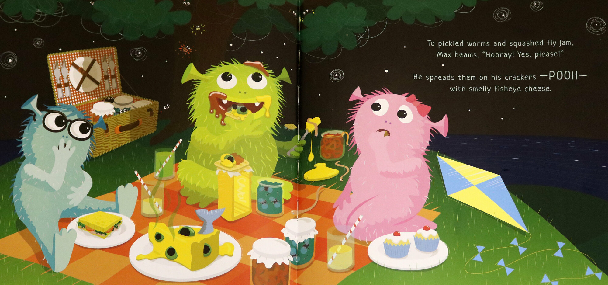 And this is just the beginning of Max's frightful mealtimes. From fish-eye cheese and bug burgers to snail trail sauce and cockroach curry, Max will feast on anything crawly, creepy, hairy and sticky. But his favourite snack has to be Spider Sandwiches!