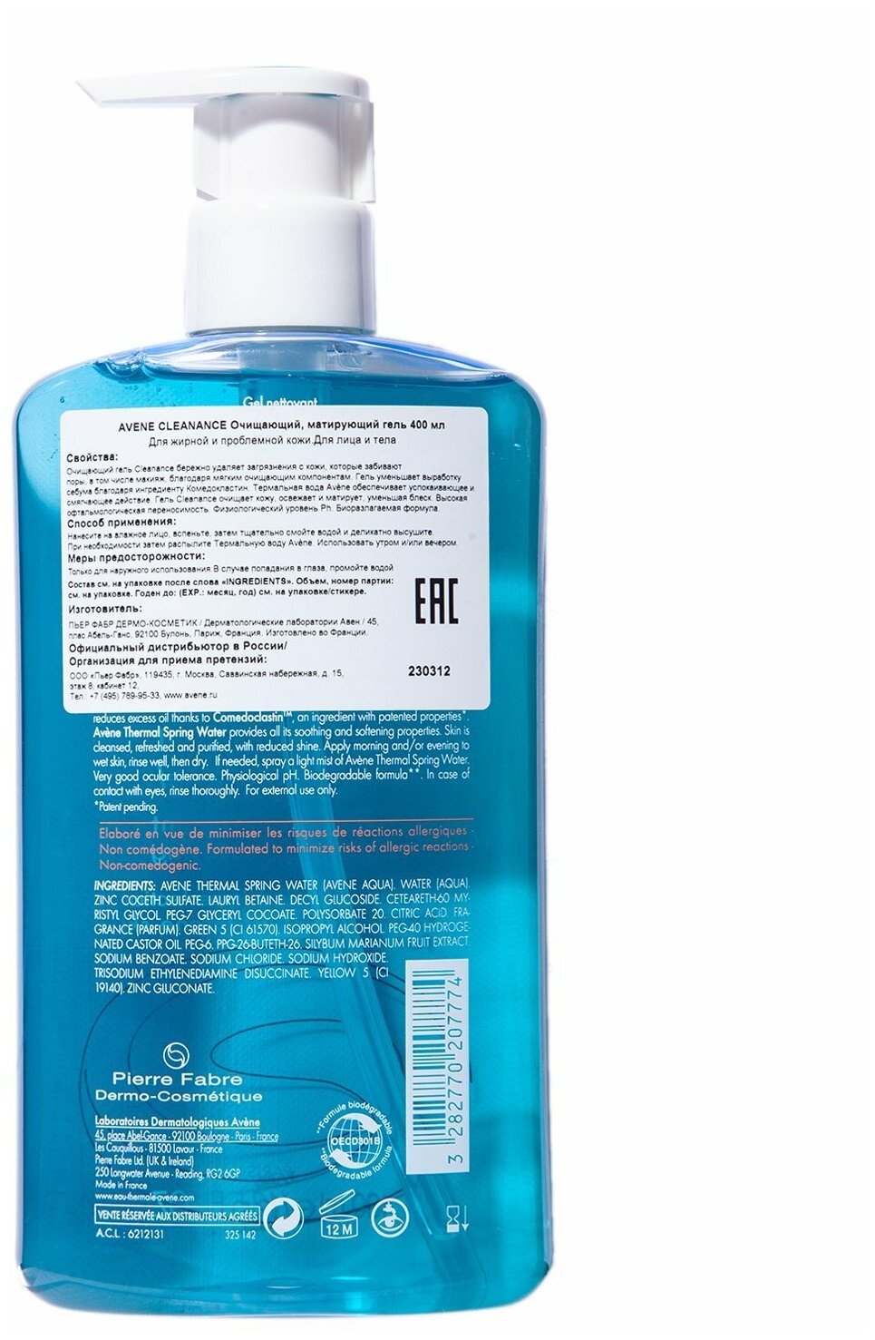 Гель очищающий матирующий Avene/Авен Клинанс 400мл (C61765) Pierre Fabre Dermocosmetique (1303300)