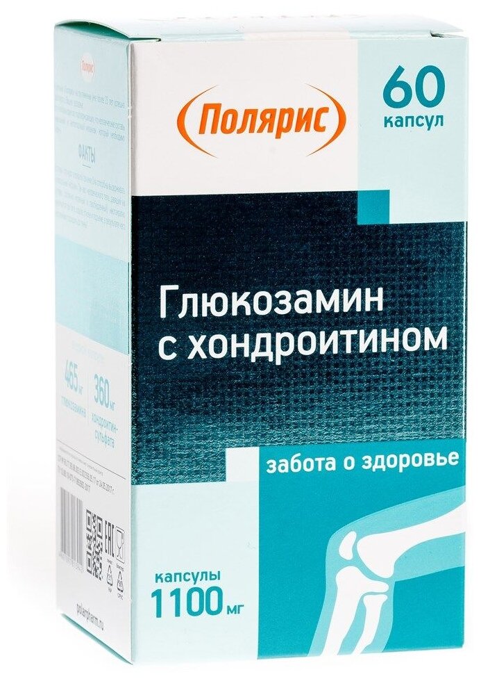 | Состав | глюкозамина гидрохлорид, хондроитина сульфат, оболочка капсулы (желатин, диоксид титана (краситель), стеарат магния (антислеживающий агент). 1 капсула содержит |