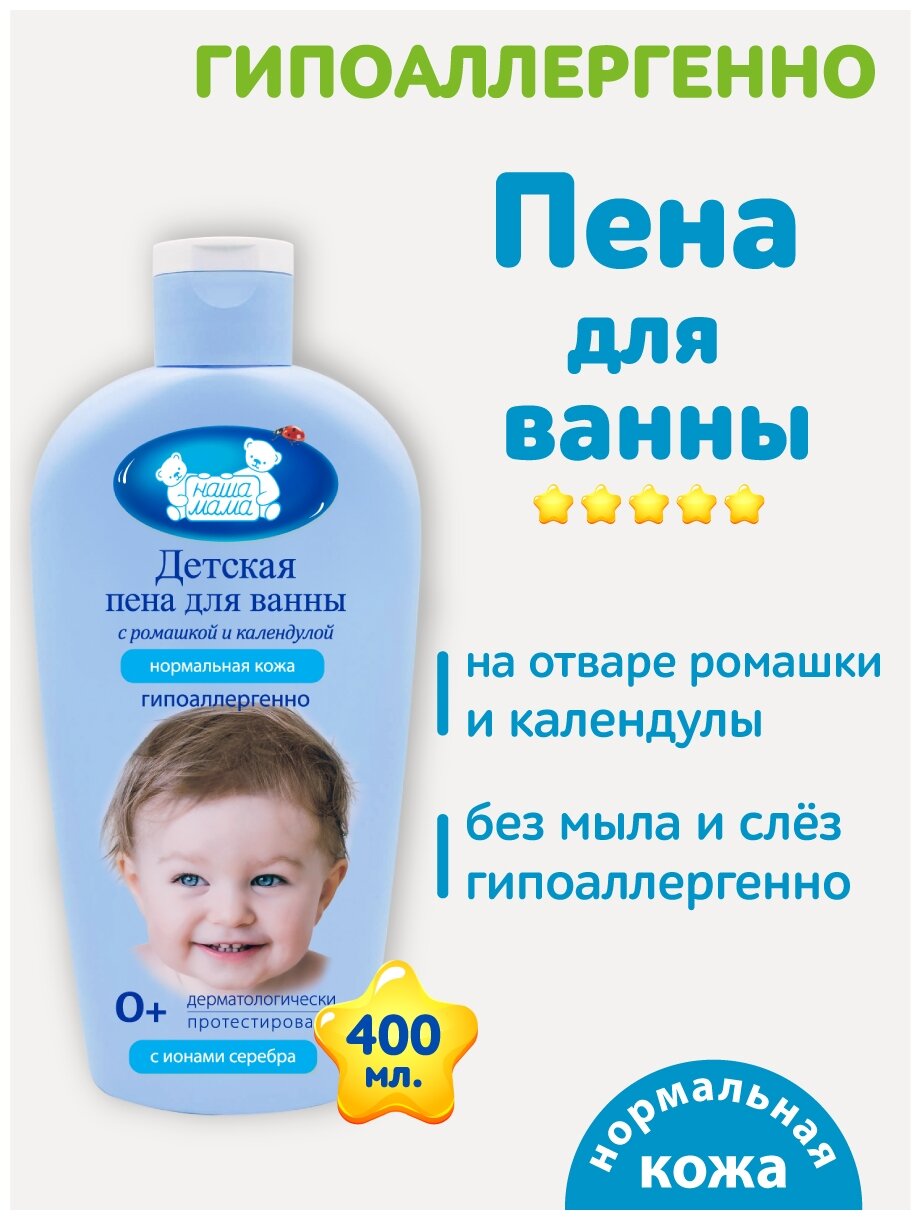 Сервис сравнения цен СкидкаГИД предлагает сравнить цены на товар «Пена для ванны детская Наша Мама с ромашкой и календулой 400мл»