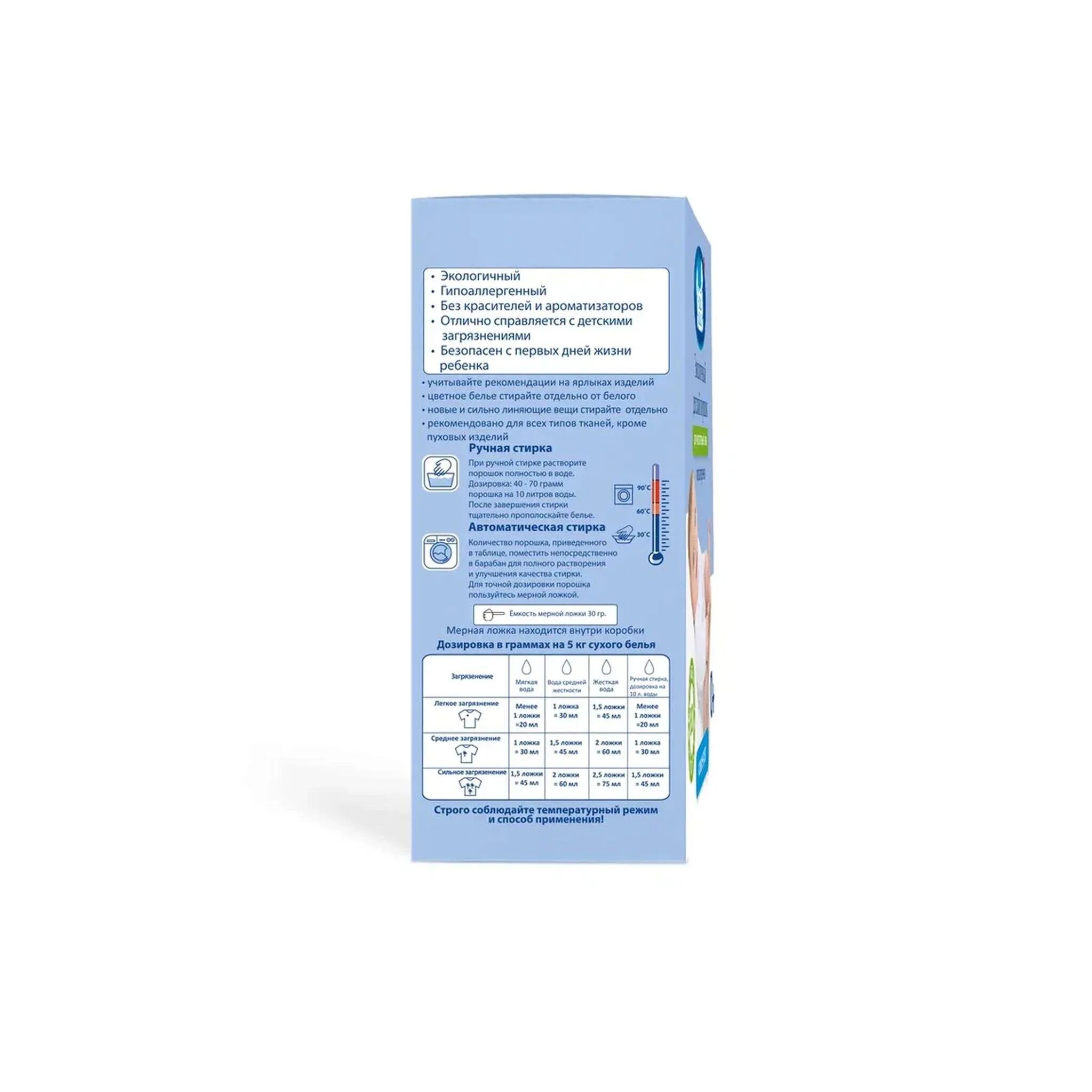 Абсолютно безопасен для Вашего ребенка и людей с чувствительной кожей. Порошок - концентрат, при температуре от 30 до 90 градусов, легко справляется с естественными загрязнениями и без труда удаляет даже самые застарелые и трудно выводимые пятна, благодаря деликатной формуле порошок - концентрат, полностью выполаскивается водой, помогает сохранить внешний вид детской одежды после многократных стирок, предотвращает потерю цвета, деформацию и усадку одежды.
