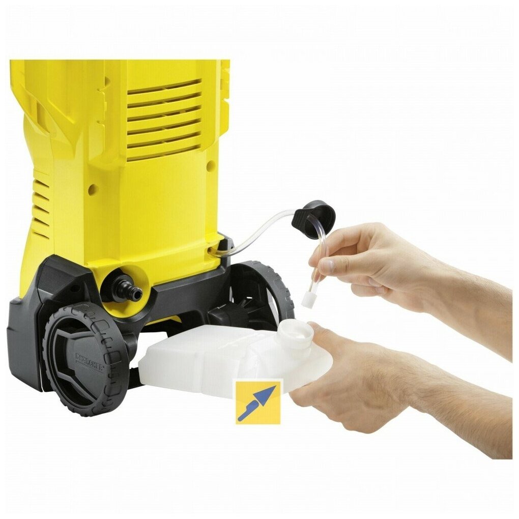 Аппарат высокого давления Керхер К 3 оснащен системой Quick Connect, что позволяет подсоединять 6-метровый шланг высокого давления одним движением. Грязевая фреза поможет справиться со стойкими загрязнениями, а струйная трубка Vario Power с регулировкой давления пригодится при мойке мотоциклов, садовой мебели и др. В мойке также предусмотрен интегрированный фильтр для очистки воды. Шланг высокого давления быстро и легко присоединяется к аппарату и отсоединяется от него, что экономит время и силы. Практичный бачок облегчает работу с чистящим средством. Кабель может храниться на крюке, который расположен непосредственно на мойке.