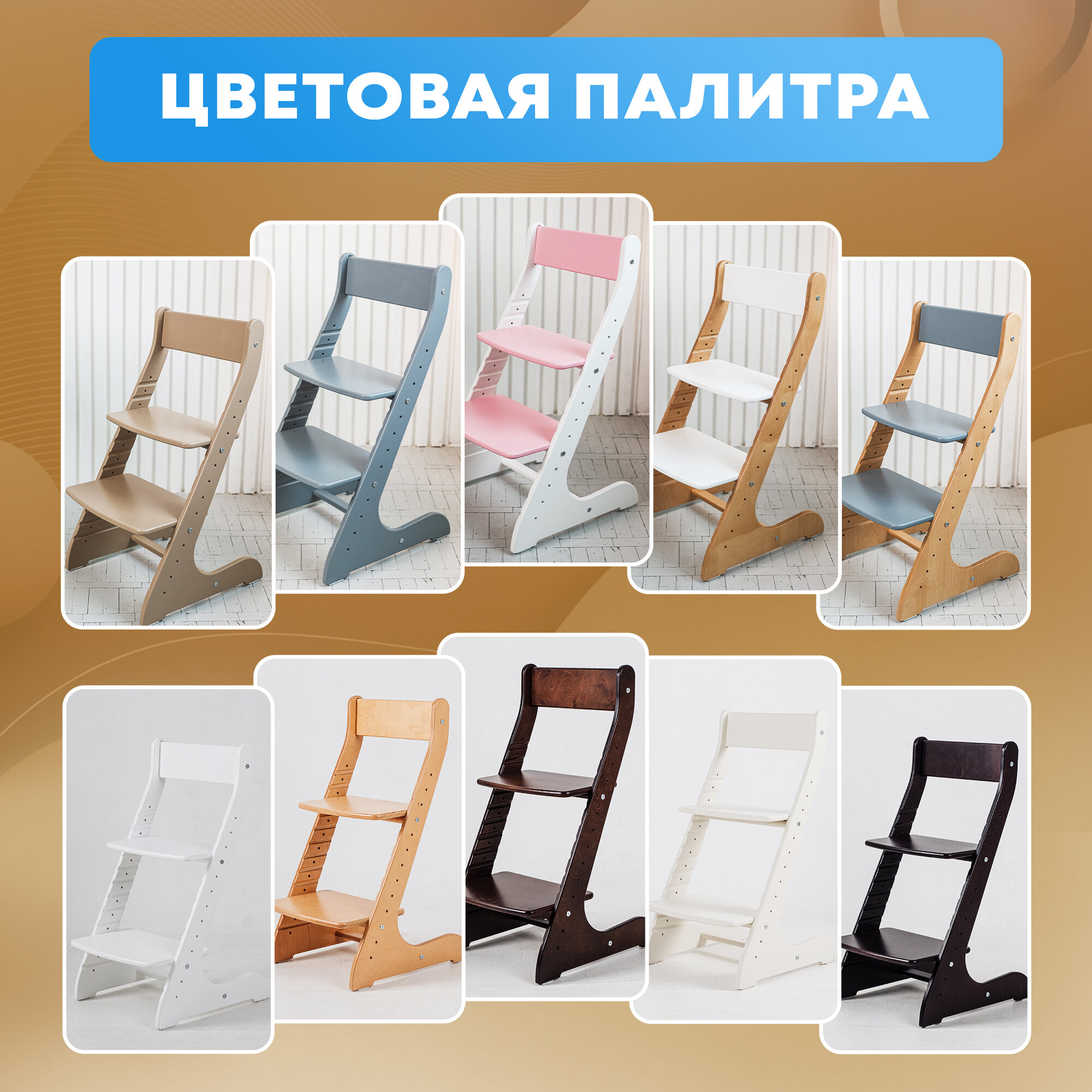 Это более упрощенный вариант растущего стула "Комфорт" с упрощенным конструктивом и прямой спинкой. Стул также удобный, прочный, с возможностью индивидуальных регулировок.
