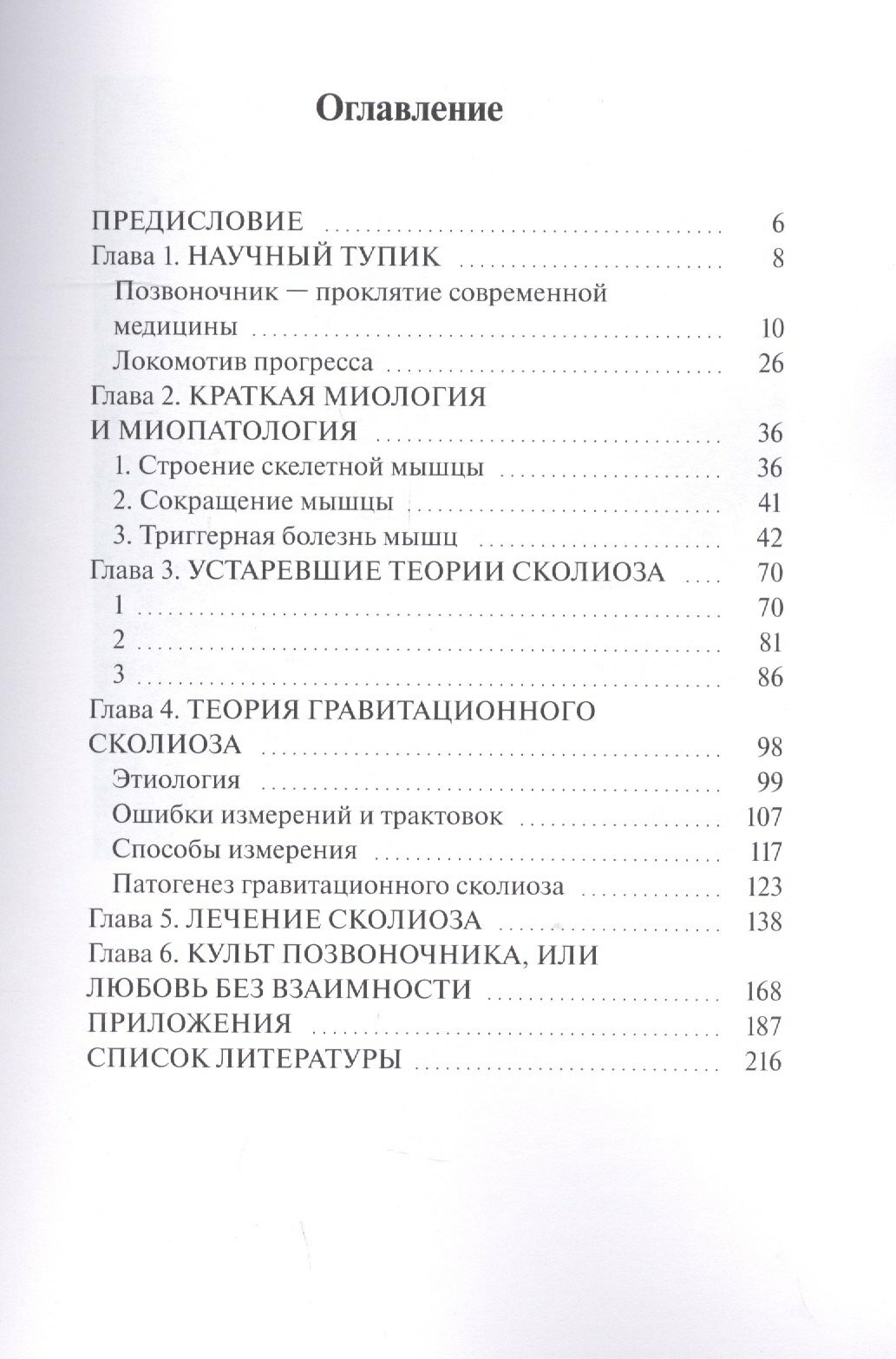 мне, как «сколеознику» с 40-летним стажем, эта книга подарила надежду, и хотелось бы, чтобы пожелания автора на радикальные изменения в этой области скорее сбылись, чтобы было как можно меньше запущенных случаев, чтобы люди, дети могли своевременно получать грамотную помощь, надеюсь он будет услышан. Мне диагноз «искривление позвоночника» был поставлен в дет саду, в возрасте 6-7 лет, из-за не полученной своевременной грамотной помощи моё искривление дошло до 4 степени, и до сих пор со мной, мне 47 лет, поддерживаю себя упражнениями, до сих пор жду избавления, услышьте нас, а доктору спасибо за труд, Ольга