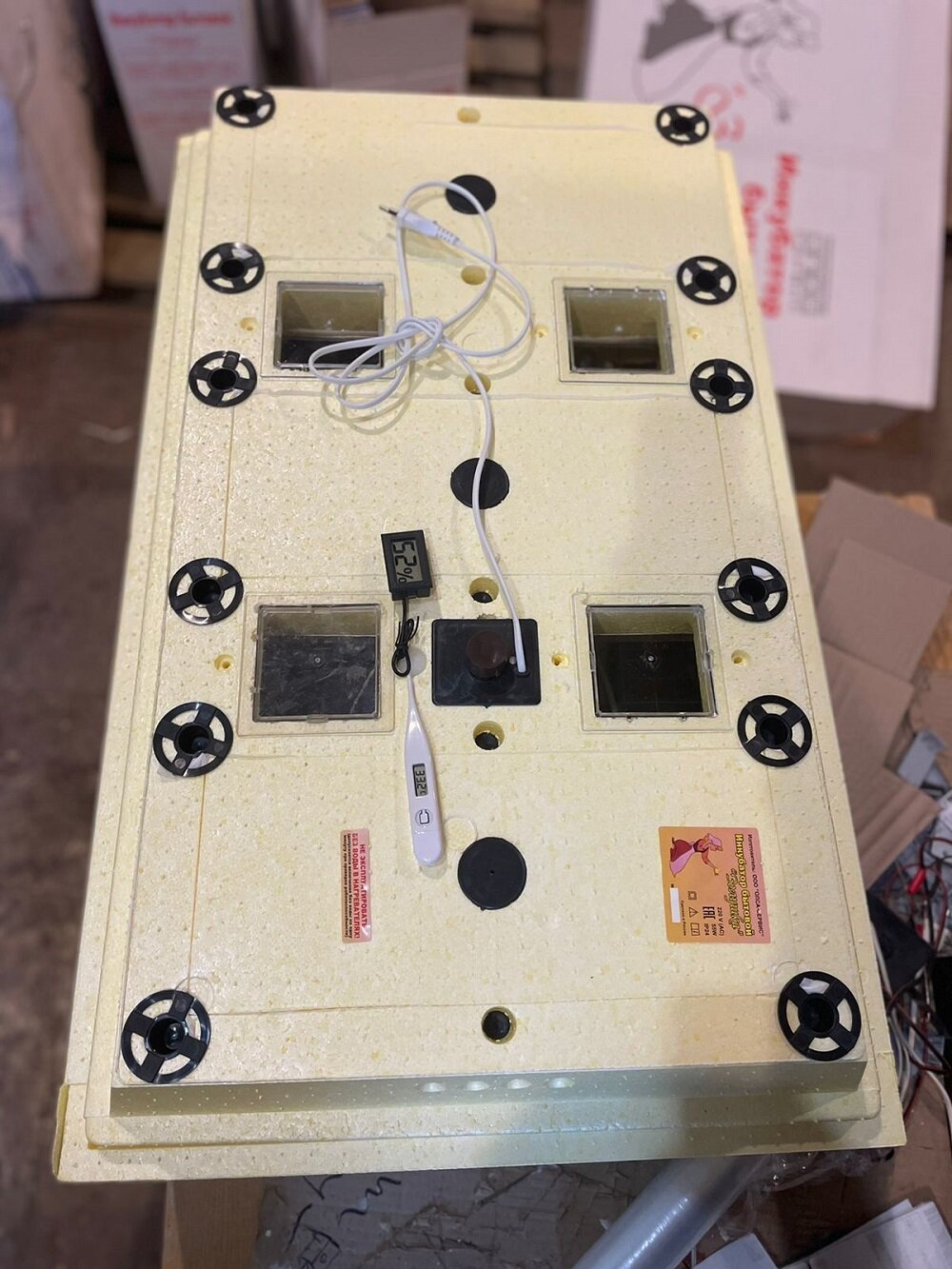В случае отключения электроэнергии имеет возможность продолжать инкубацию с помощью горячей воды. Автоматически переворачивает яйца — 10раз за сутки. Комплектуется двумя решетками: на 98 куриных и 50 гусиных яиц и тремя пластиковыми поддонами. Водяные полости формируются с помощью полиэтиленовых ванночек, которые герметизируются на 1 см выше уровня воды, что практически полностью исключает подтекание воды из нагревателя.