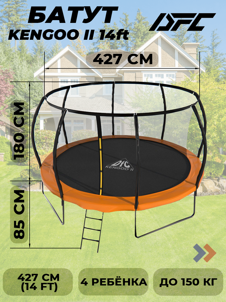 Батут DFC с сеткой и лестницей 427 см оранжевый Батут Kengoo-II 427 см