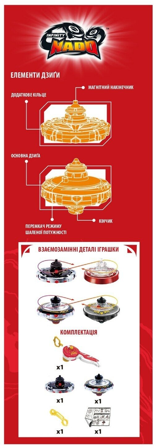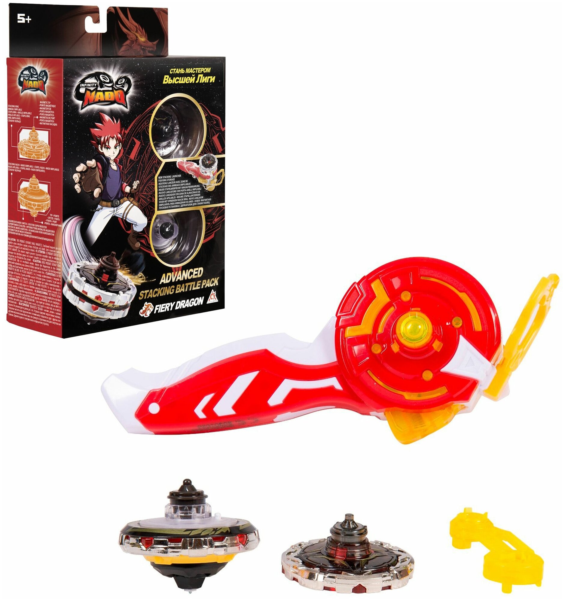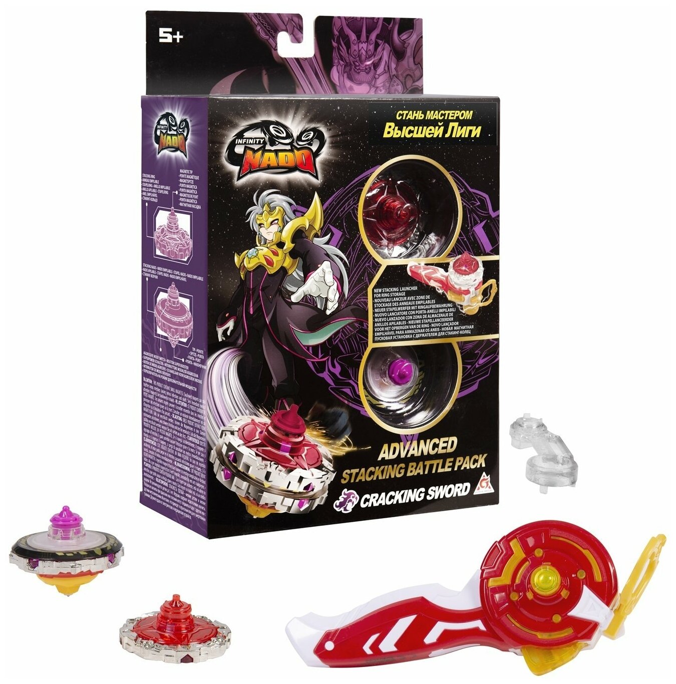 Чтобы атаковать противника невероятной башней Надо, запускай стакинг-кольца на стакинг-волчок, активируй режим дополнительной мощности для самой стремительной атаки Надо! Используй волчок серии Стакинг Адвансд с кольцами из набора 3-в-1 и с другими наборами серии Стакинг для создания самого высокого и эпичного волчка Инфинити Надо. Новая магнитная пусковая установка с держателем для стакинг-колец позволяет коллекционировать кольца и максимально быстро запускать их на стакинг-волчок во время баттла.