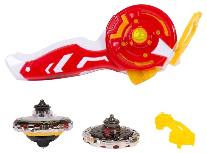 Набор состоит из магнитной пусковой установки с держателем для колец, металлического стакинг-волчка, металлического стакинг-кольца, монтажного инструмента. Эти элементы являются взаимозаменяемыми со всеми волчками серии Стакинг.