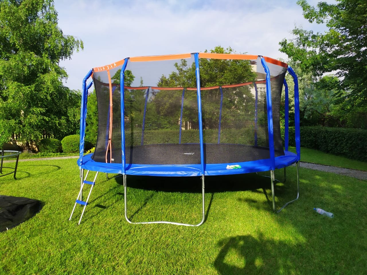 Для защиты детей вход/выход через сетку выполнен на молнии с фиксирующими защелками с внешней стороны. Защитная сетка под батутом, сумка для обуви, лестница для удобного входа в батут, ключи для сборки и подробная инструкция на русском языке входят в комплект поставки.
