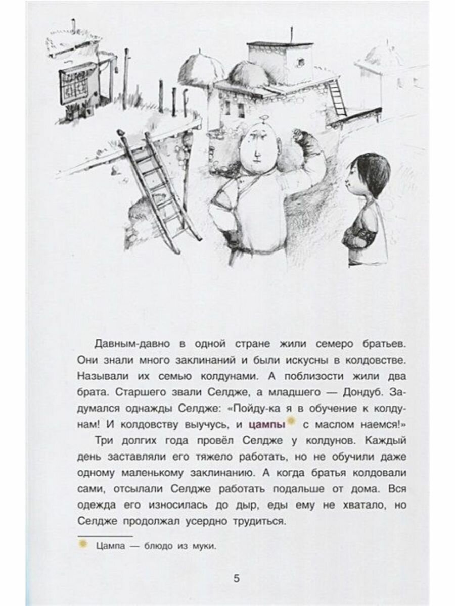 Читателей тибетских сказок ждет встреча с удивительными персонажами. Это семеро колдунов, которые ни за что не хотели делиться своими секретами, мудрейший учитель, который постиг все тайны мира и ещё кое-кто таинственный, сидящий на верхушке мангового дерева. А юноше Дондубу придётся совершить опасное путешествие ради спасения своего незадачливого брата и благоденствия всех людей