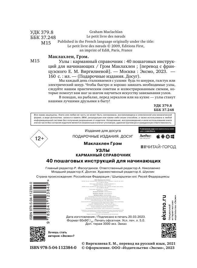 Сервис сравнения цен СкидкаГИД предлагает сравнить цены на товар «Книга: Узлы. Карманный справочник. 40 пошаговых инструкций для начинающих (Маклахлен Грэм); ООО "Издательство "Эксмо", 2021»