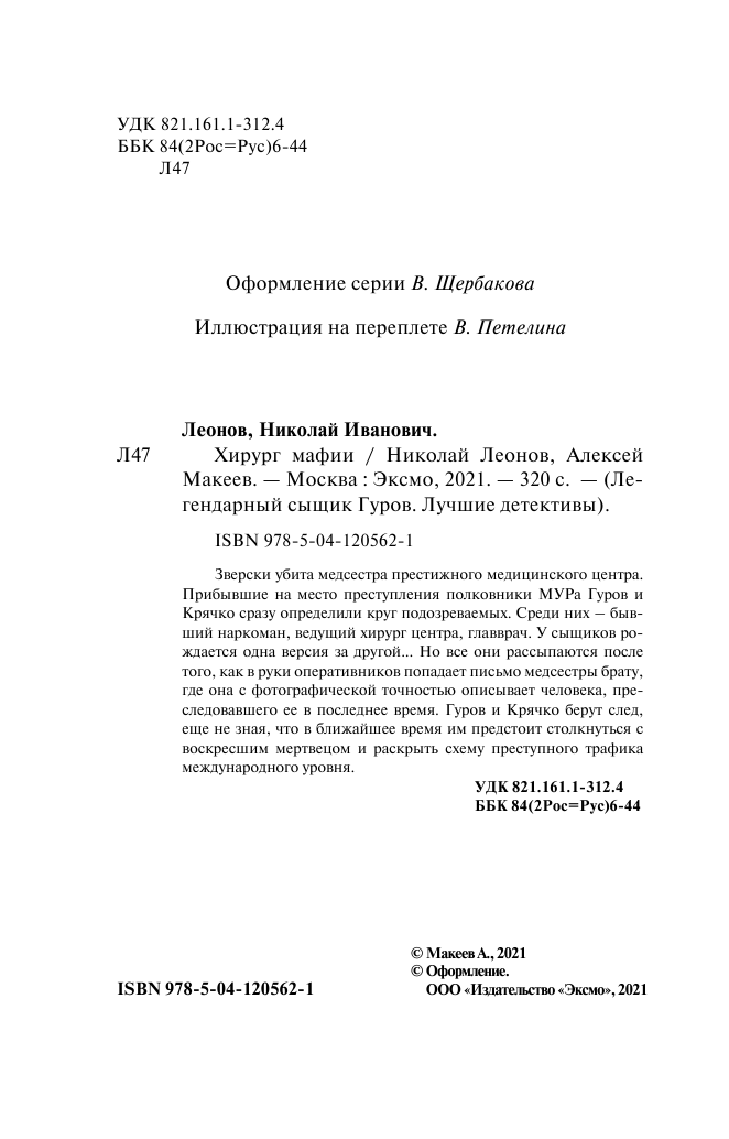 Книга: Хирург мафии (Леонов Николай Иванович, Макеев Алексей Викторович); ООО "Издательство "Эксмо", 2021