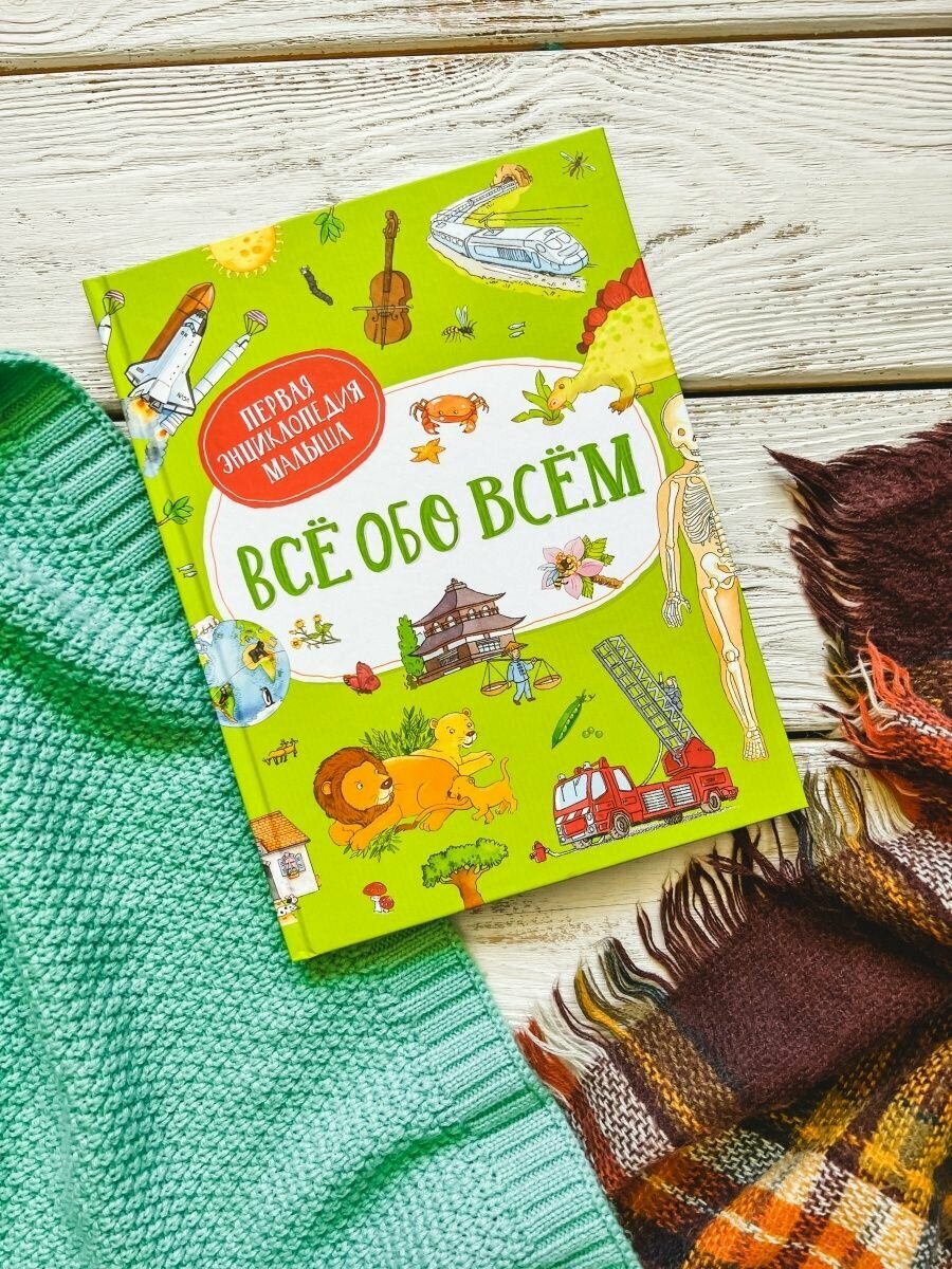 Книга действительно обо всем на свете. Всё, что окружает ребенка с первых дней жизни, описано в этой энциклопедии для малышей. Книга большая, на каждой странице много картинок, а текста пару строк. Иллюстрации рисованные, не реалистичные. Но для ребёнка это не имело никакого значения. Единственное, на мой взгляд для книги, предназначенной для самых маленьких читателей, страницы слишком уж тонкие.