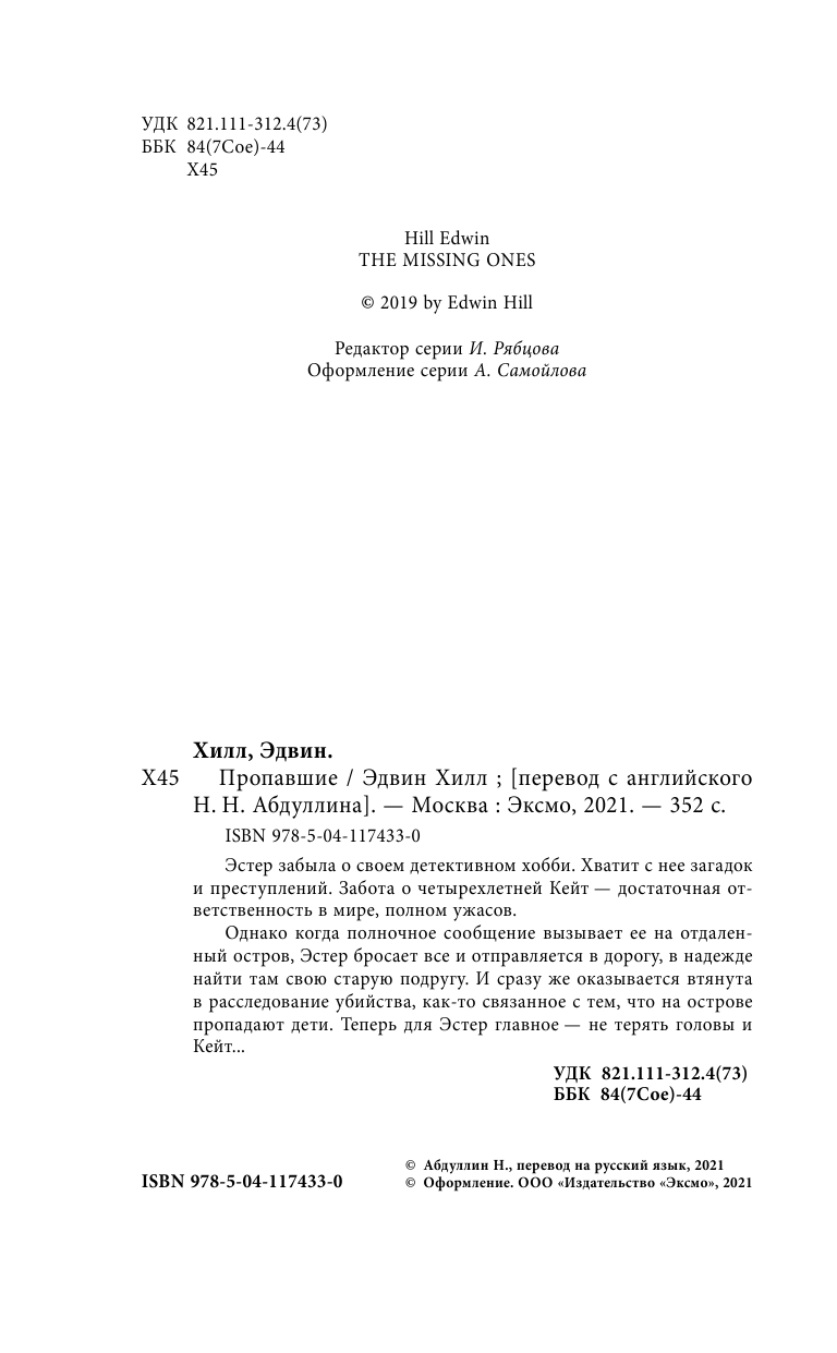 Книга: Пропавшие (Эдвин Хилл); Эксмо, Inspiria, Редакция 1, 2021