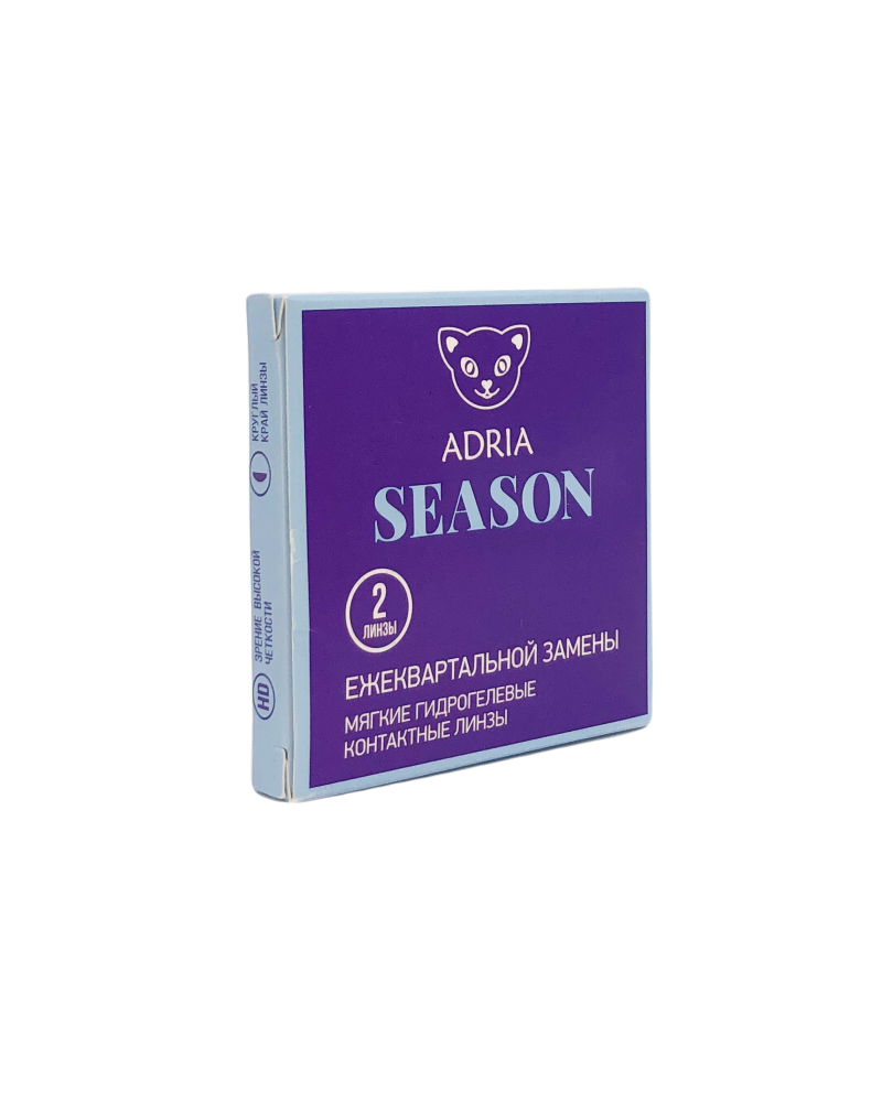 ADRIA Season (Адриа Сизон) Контактные линзы ADRIA Season - проверенные временем линзы на квартал.В упаковке ADRIA Season 2 pack - 2 штуки (рассчитана на 3 месяца ношения)В упаковке ADRIA Season 4 pack - 4 штуки (рассчитана на 6 месяцев ношения)Преимущества ADRIA Season:Выгодно. Стоимость одного дня ношения - чуть больше 5 рублей.Качественный материал. Линза остается чистой даже при длительном ношении, сохраняя прочность и гибкость.Тонкий край линзы - удобство уже при надевании. А для дополнительного комфорта в буферный раствор мы добавляем увлажнитель - гиалуроновую кислоту. HD-качество зрения. Линзы созданы по американской запатентованной технологии High Definition vision. Уникальный дизайн передней поверхности линзы обеспечивает повышенную контрастность и ясность зрения в любое время суток и при любых освещениях, даже в сумерках.Универсальность. Радиус базовой кривизны линзы - 8,6 мм. Подходит для глаз более 82% населения России.Режим ношения: дневной