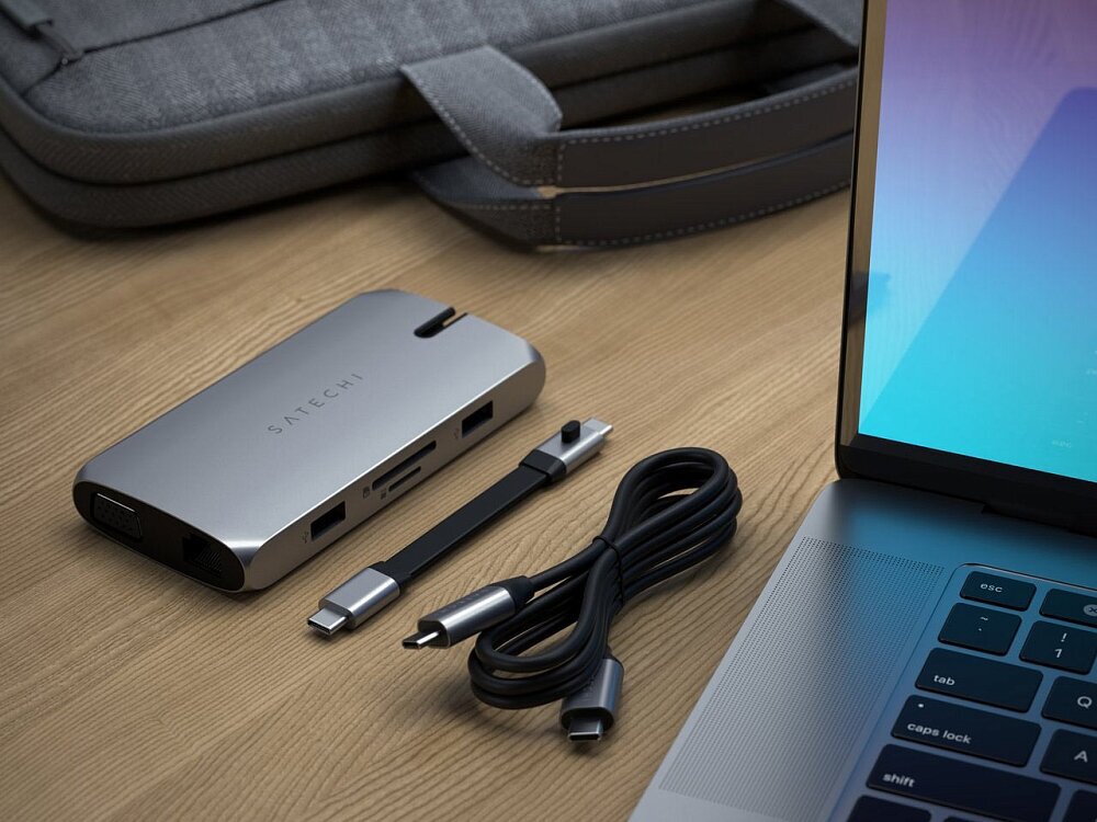 | Прочие особенности и свойства | портативный USB-C адаптер, порты: USB-C PD, USB-С, 2x USB-A, HDMI, VGA, SD, microSD, Gigabit Ethernet, два съемных кабеля USB-C |