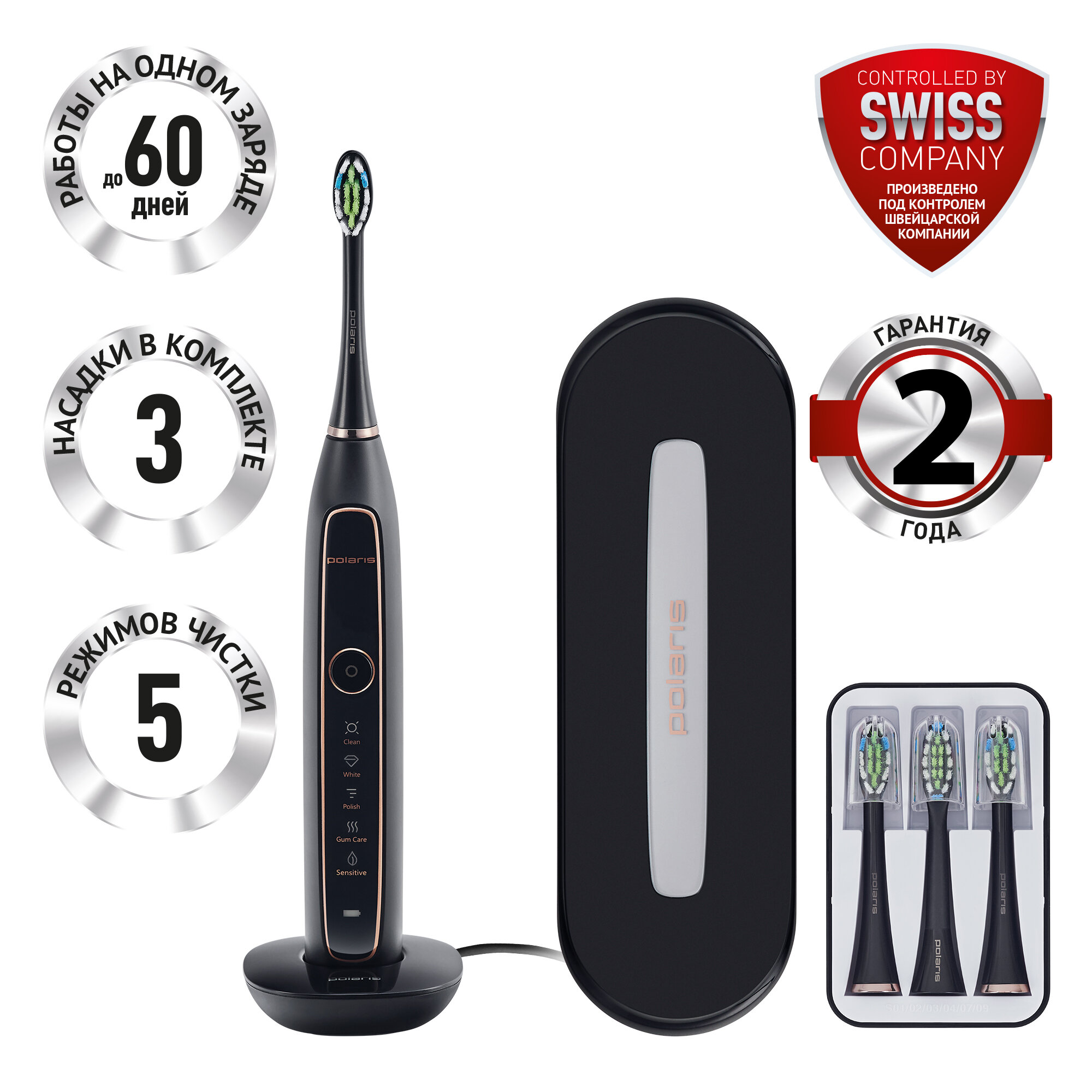 Электрическая зубная щетка Polaris PETB 0101 с уровнем влагозащиты IPX7 работает до 60 дней работы без подзарядки в режиме Sensitive. Имеется дорожный футляр c USB зарядкой и бесконтактное зарядное устройство. Автоматическое отключение через 2 минуты.