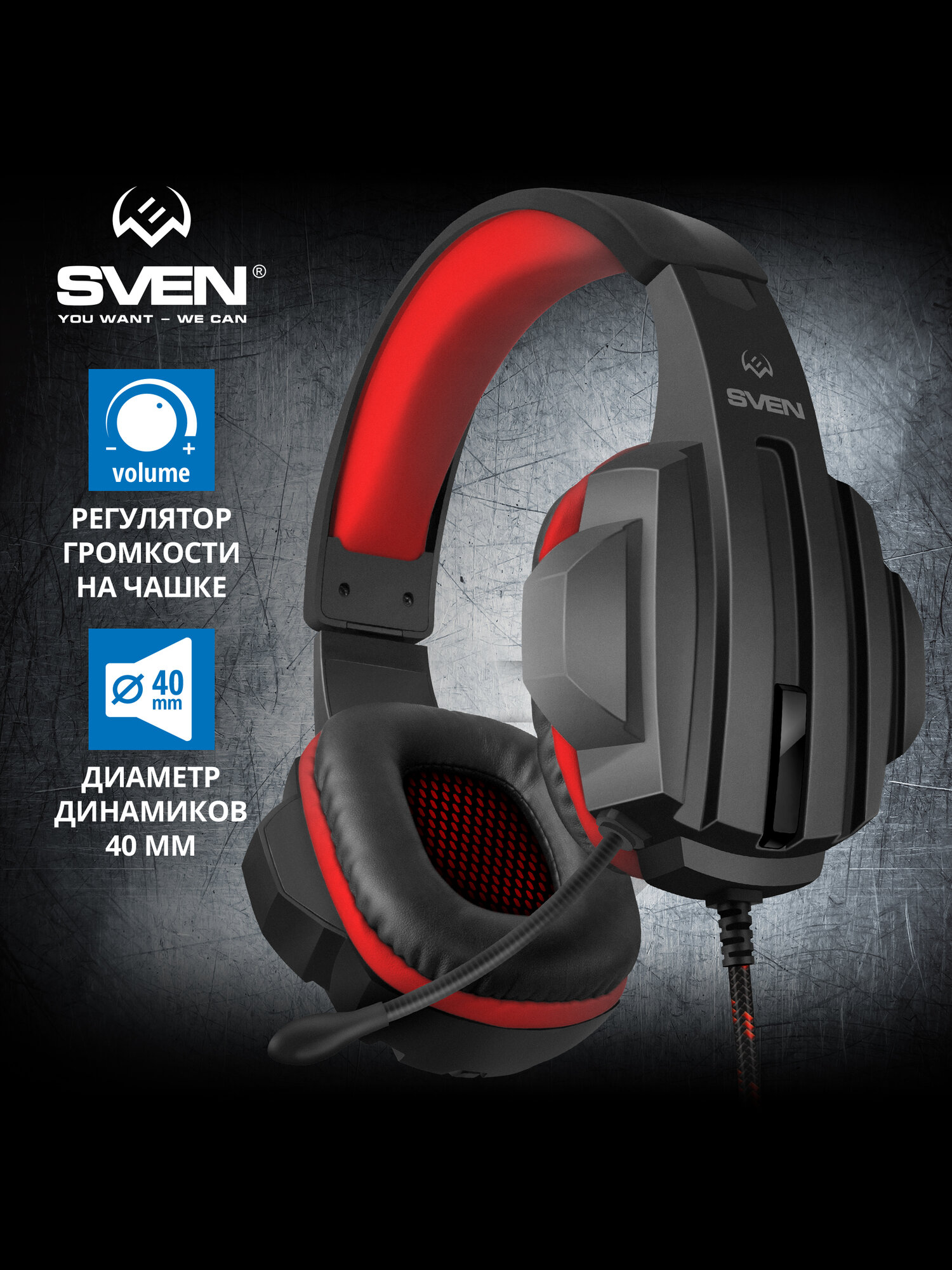 Наушники накладные Sven 2.2м черный/красный проводные AP-G300MV