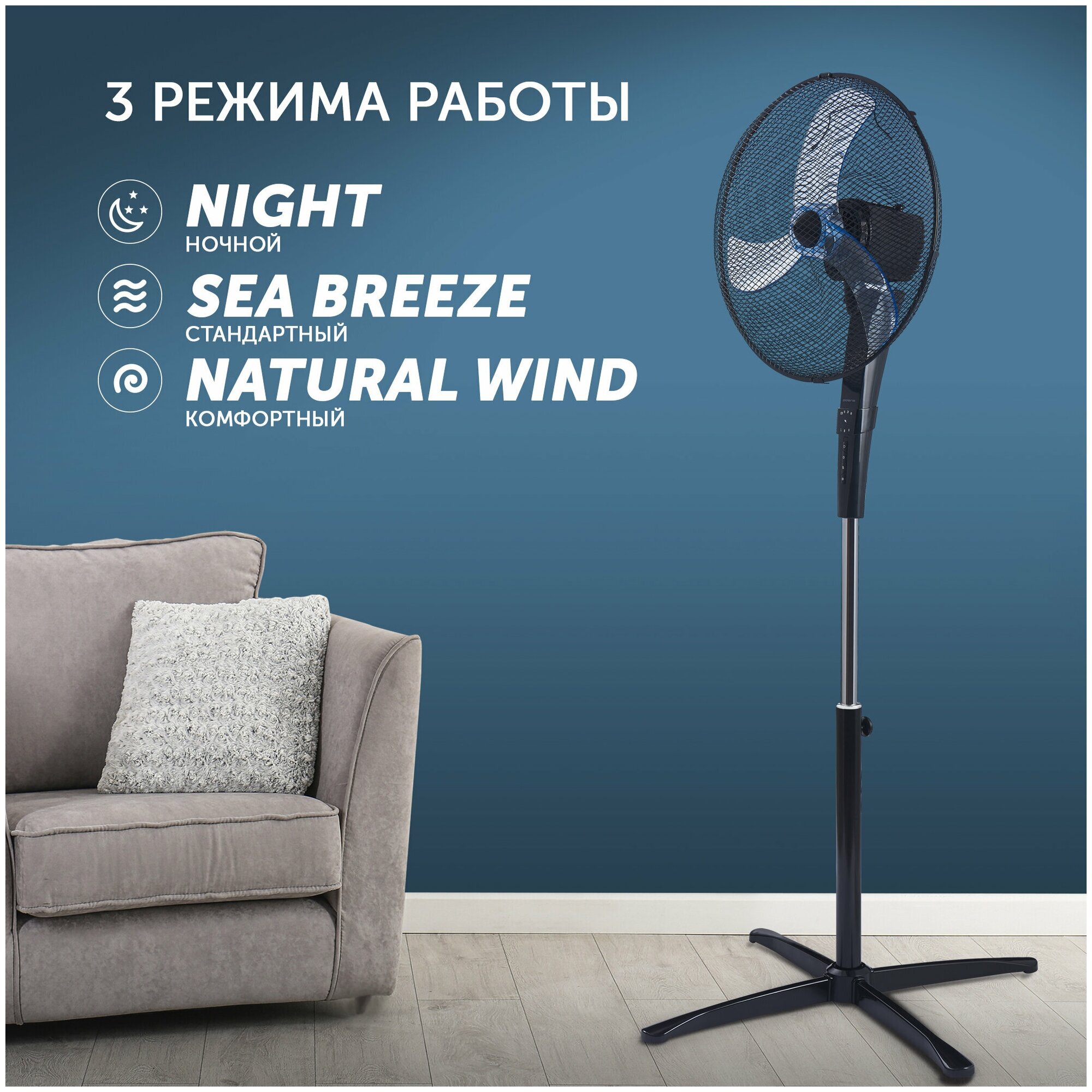 | Особенности | Прозрачные лопасти специальной аэродинамической формы для снижения уровня шума и стабильно направленного потока. Пульт дистанционного управления. 3 дополнительных режима: Night, Sea Breeze, Natural Wind. LED-индикаторы. Таймер на 7,5 часов. |