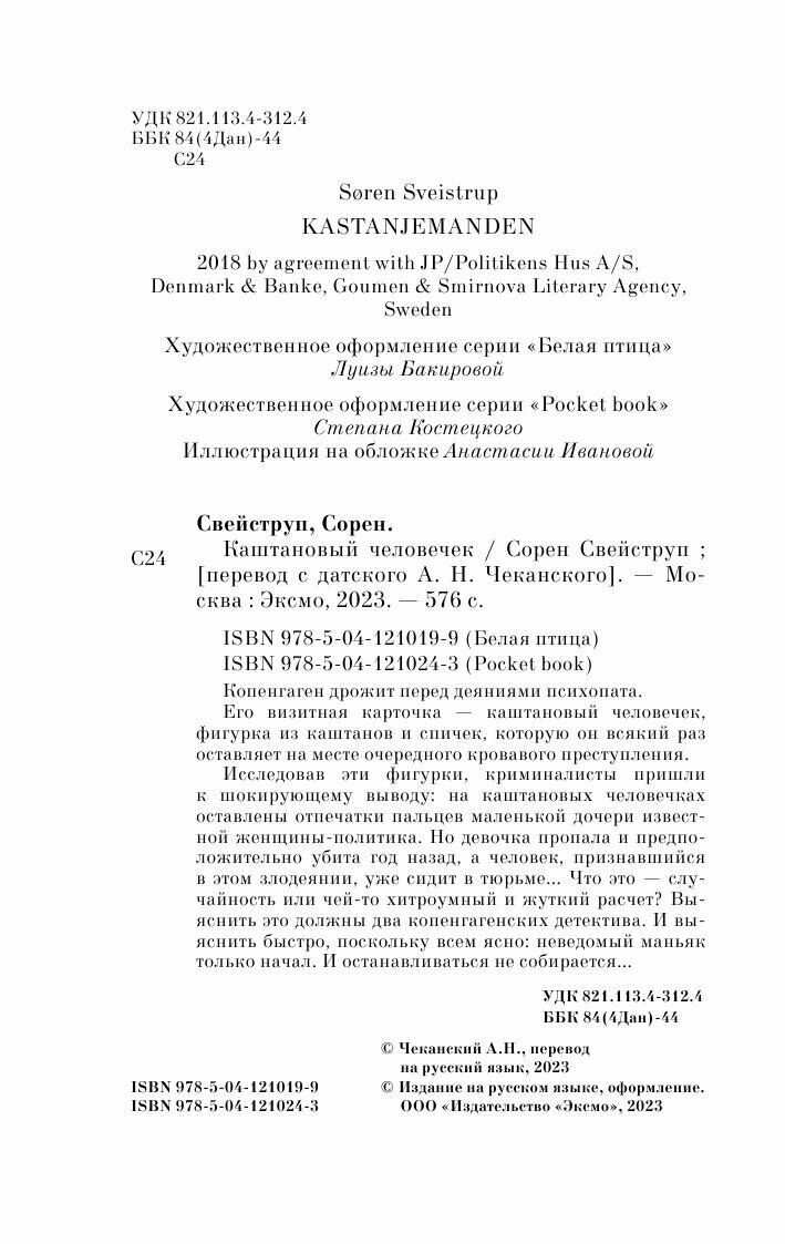 Книга: Каштановый человечек (Сорен Свейструп); Эксмо, Редакция 1, 2024