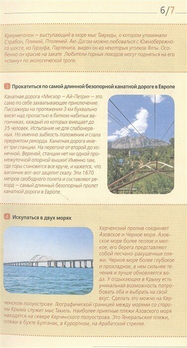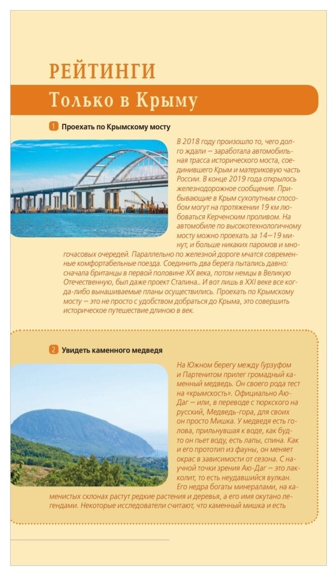 Решили объехать Крым, пока были в отпуске и пока туристов было не очень много. Посетили большинство городов, указанных в путеводителе. Погуляли по представленным маршрутам в Ялте, в Керчи, в Севастополе. Все четко и по делу, очень качественная печать порадовала и красочные фотографии. -