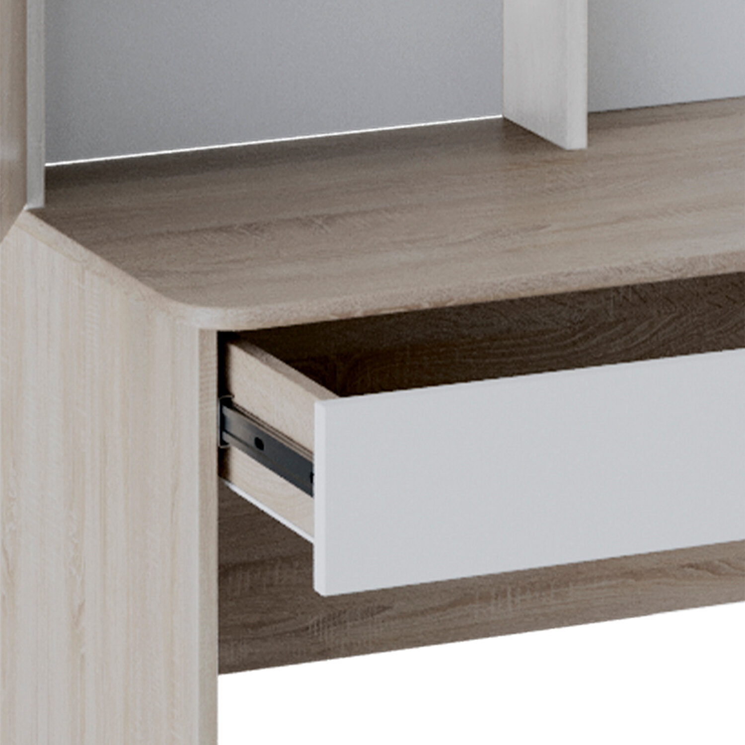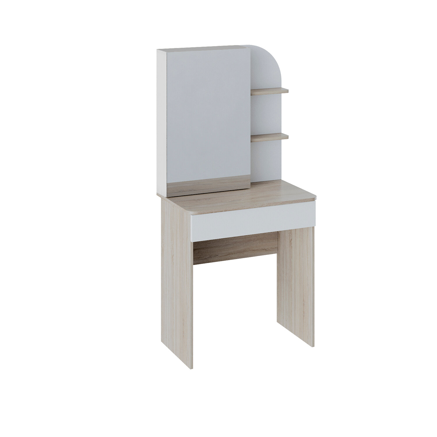 Стол туалетный «Майя» отличается плавными линиями и универсальными текстурами, которые создают основу для дальнейшего оформления комнаты в различных стилях. Наличие открытых и скрытых полок, зеркала представляют собой главные атрибуты современного туалетного столика.