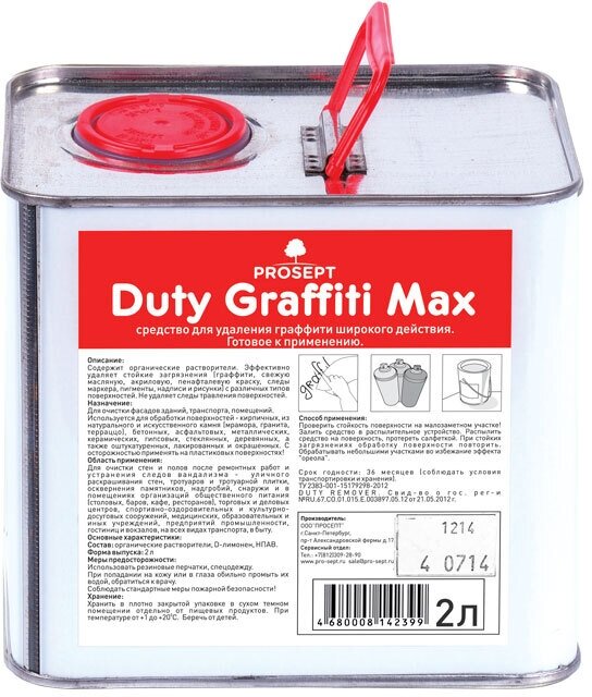 Сервис сравнения цен СкидкаГИД предлагает сравнить цены на товар «Средство для удаления граффити широкого действия PROSEPT Duty Graffiti Max 2л (151-2)»