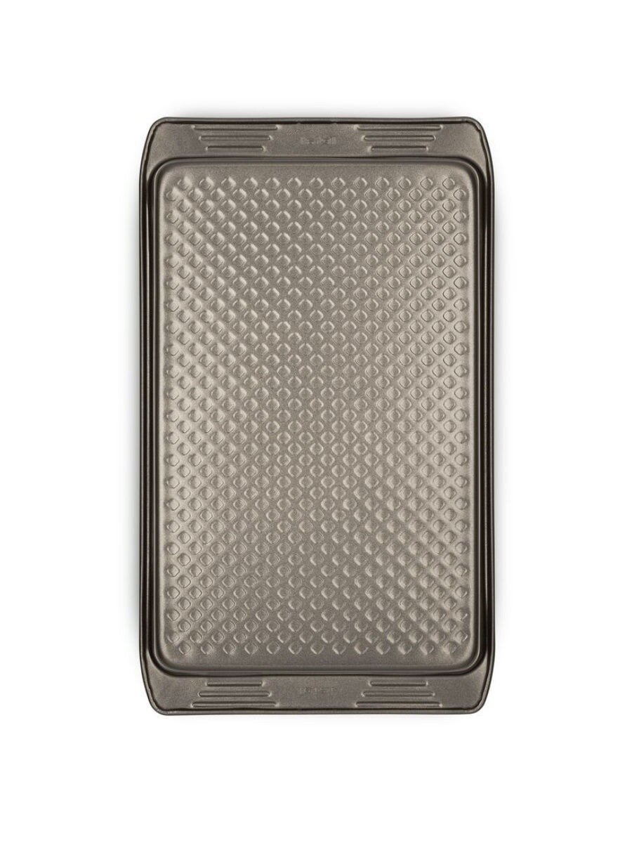 Форма из углеродистой стали с рифленой поверхностью. Большие удобные ручки. Антипригарное покрытие и текстурированное дно позволяют легко извлекать выпечку. Легко чистить после использования.