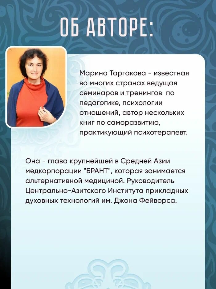 Книга Марины Таргаковой "Как понять себя и других" - про то, как на самом деле познакомиться с самим собой и со своим спутником. Ведь на самом деле мы друг друга не знаем. Но если мы начнем видеть глубину человека, то нам станет друг с другом интересно. И поэтому близкие отношения и вообще доверительные, дружеские отношения - это всегда отношения долгосрочные, потому что если мы будем просто менять партнеров, у нас не будет ни малейшего шанса познать ни себя, ни другого, ни любовь. Нам нужно научиться дорожить теми отношениями, которые у нас есть, и идти вглубь, а не вширь.