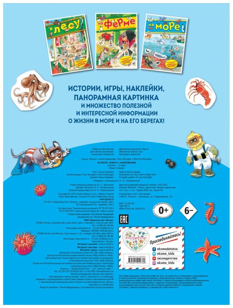 Истории, игры, наклейки, панорамная картинка, чтобы создать свою собственную историю, и множество полезной и интересной информации о жизни в море и на его берегах!