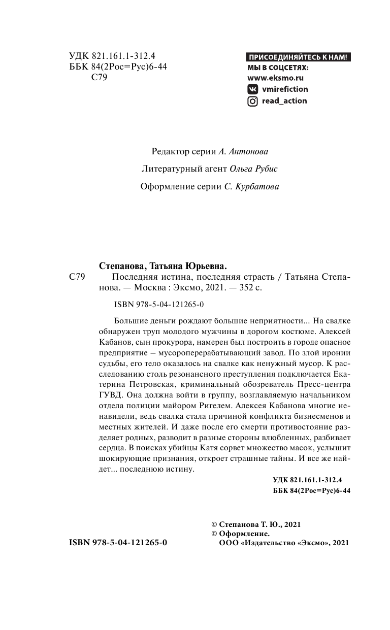 Последняя истина последняя страсть (Степанова Татьяна Юрьевна); ООО "Издательство "Эксмо", 2021