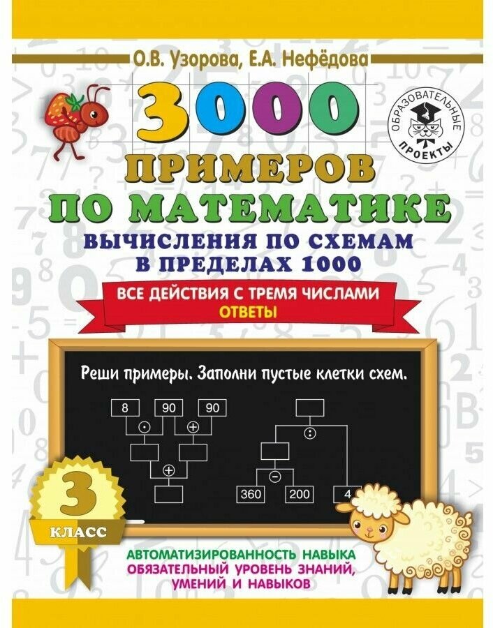 3000 примеров по математике. Вычисления по схемам в пределах 100. Все действия с четырьмя числами. Ответы. 3 класс (Нефедова Елена Алексеевна; Узорова Ольга Васильевна); ИЗДАТЕЛЬСТВО "АСТ", 2021