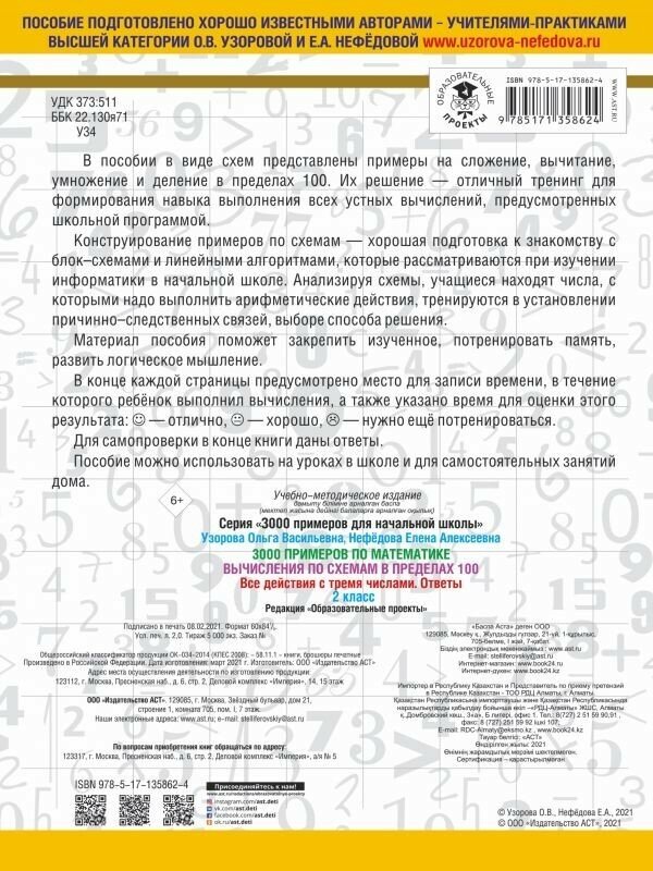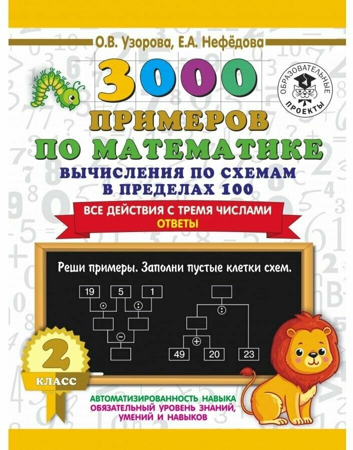 3000 примеров по математике. Вычисления по схемам в пределах 100. Все действия с тремя числами. Ответы. 2 класс (Нефедова Елена Алексеевна; Узорова Ольга Васильевна); ИЗДАТЕЛЬСТВО "АСТ", 2021