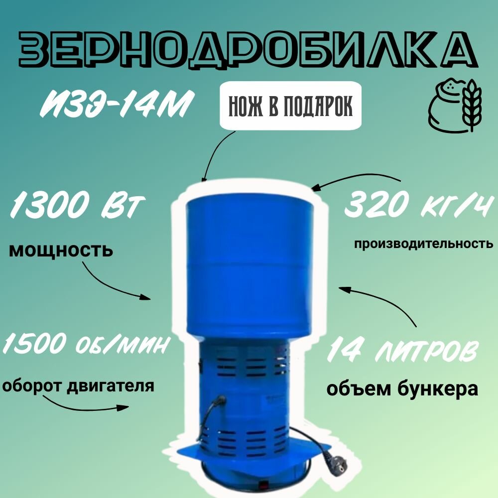 Фермер ИЗЭ-14M обладает высокой мощностью в 1300 Вт, что позволяет быстро и качественно измельчить любой вид зерна. Его синий цвет корпуса придаёт ему стильный внешний вид, а металлический корпус обеспечивает прочность и долговечность.