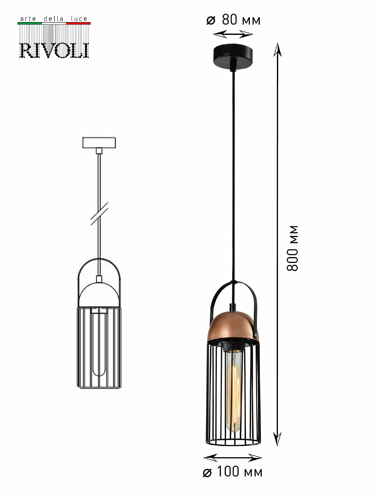 Подвесной светильник 5062-201 - продукт известной компании Rivoli (Италия). Имеет максимальную мощность 40 Вт, освещает площадь до 2 кв. м. Отлично подойдет для таких мест, как гостиная, кафе, кухня, офис, над кухонным островом. Впишется в интерьеры следующих стилей: лофт.