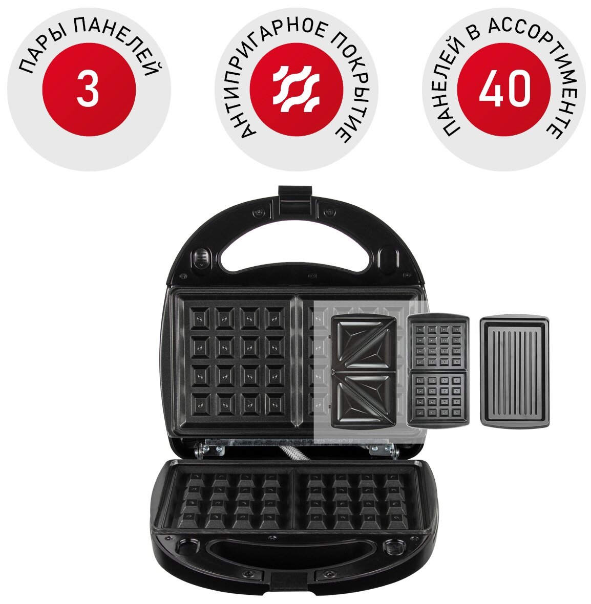 | Вид панели для вафель | сендвичи, бельгийские вафли, бутерброды |