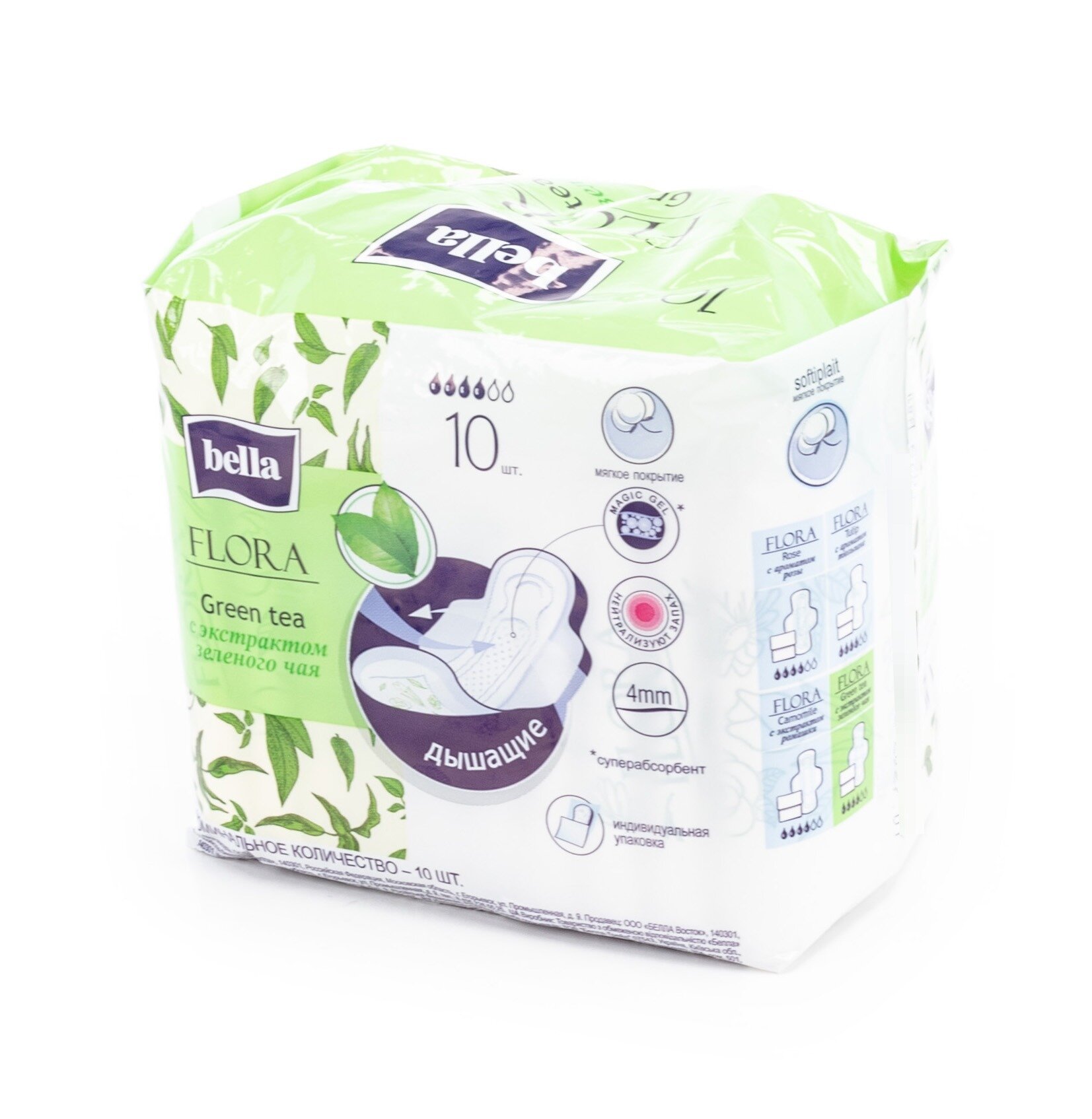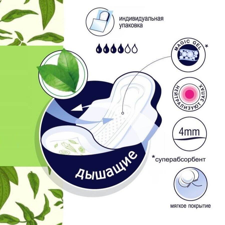 Прокладки Bella Flora анатомической формы с крылышками с растительным экстрактом зеленого чая подарят ощущение свежести и комфорта в течение всего дня.