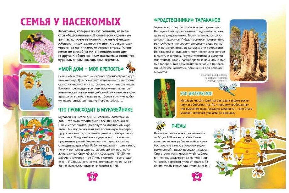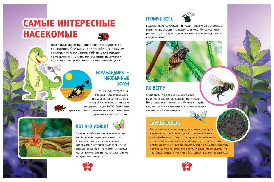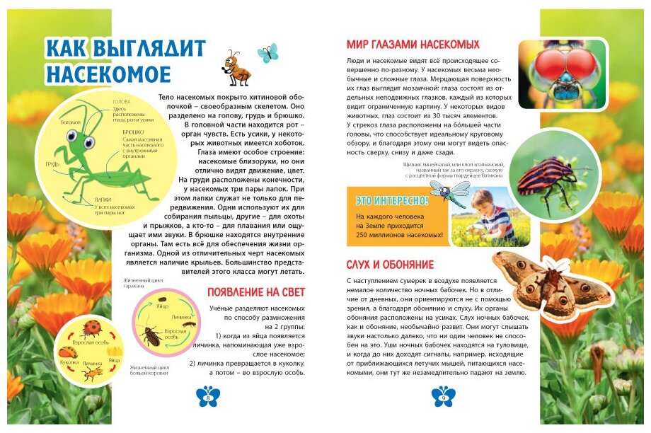 Из этой красочной энциклопедии ты узнаешь, почему их так назвали, зачем нужны шмели и божьи коровки, где обитают самые необычные насекомые, какими удивительными способностями они обладают, познакомишься с муравьиным львом и орхидейным богомолом, а также с самыми большими и самыми красивыми насекомыми в мире.