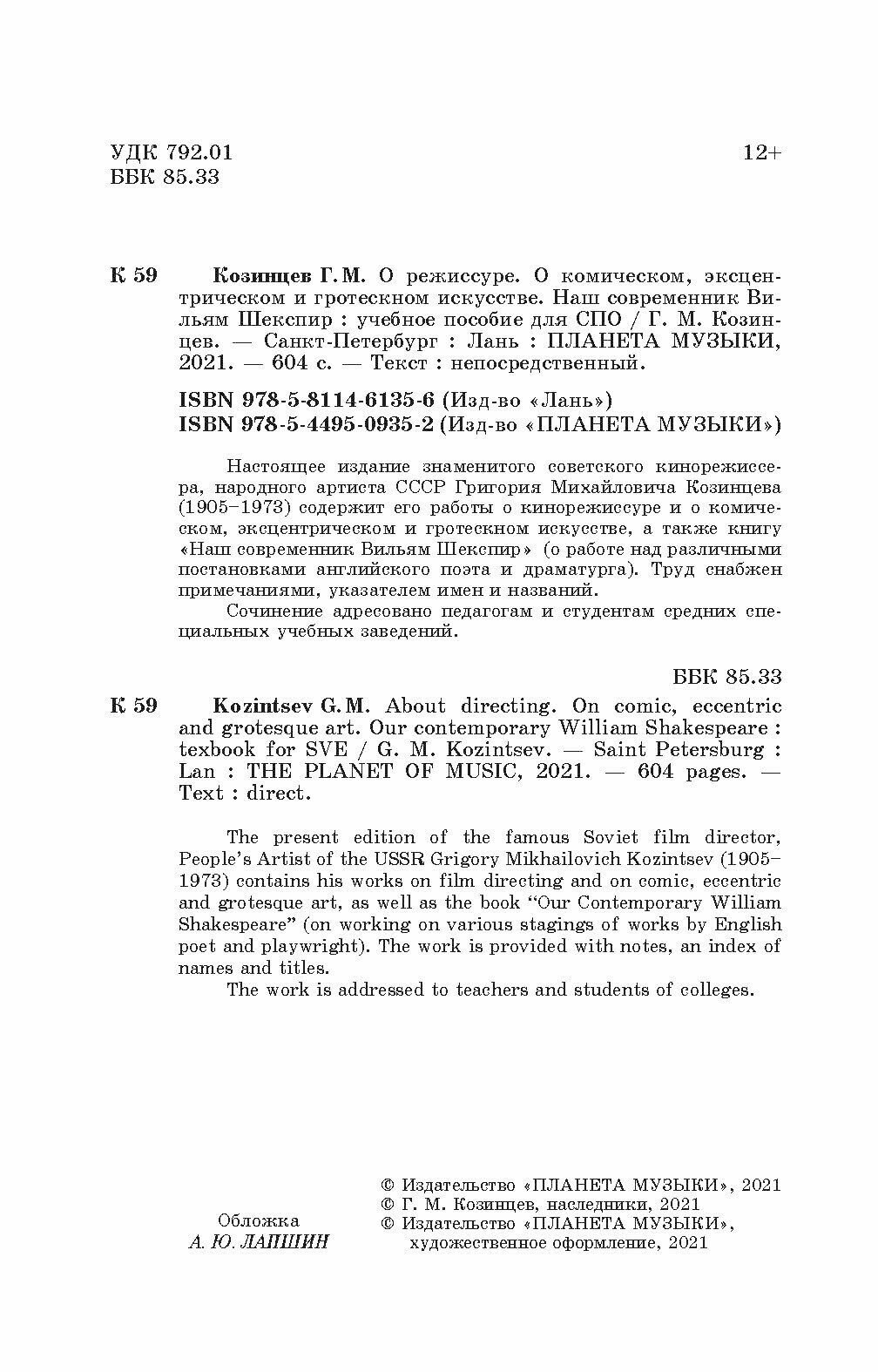 О режиссуре.О комичэксцентрич.искус.В.Шекспир.СПО (Г. М. Козинцев); Издательство «Планета музыки», 2021