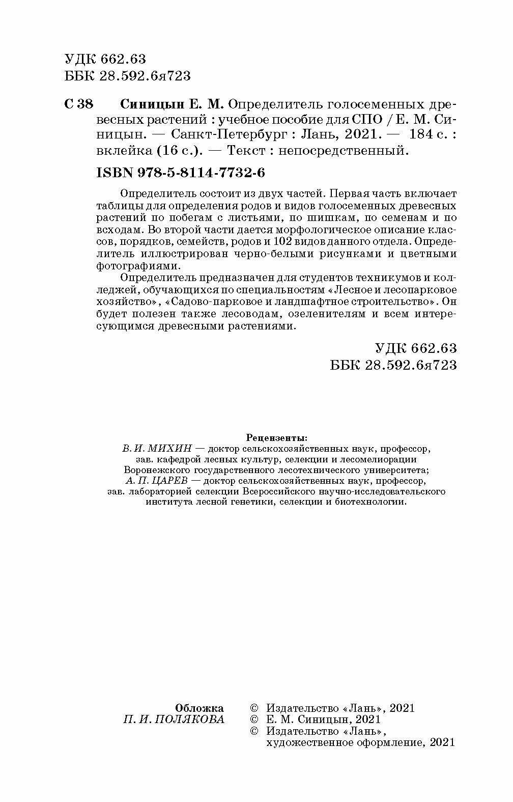 Определитель голосеменных древесных растений.СПО (Е. М. Синицын); Издательство ЛАНЬ, 2021