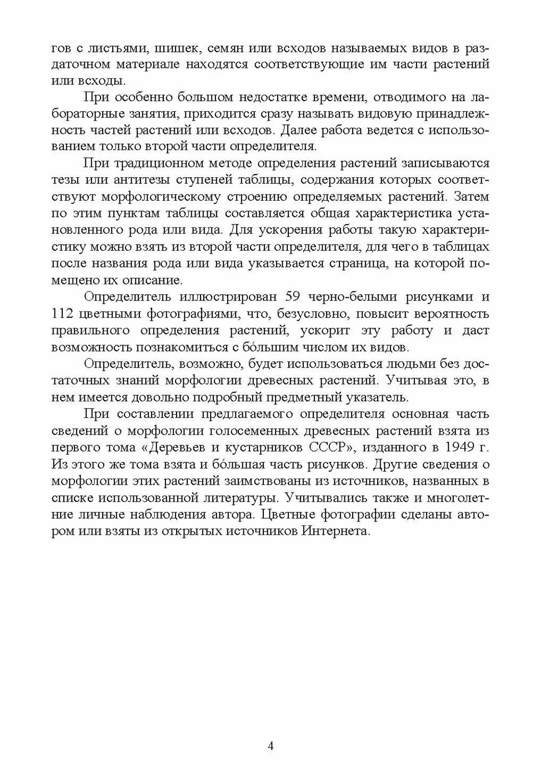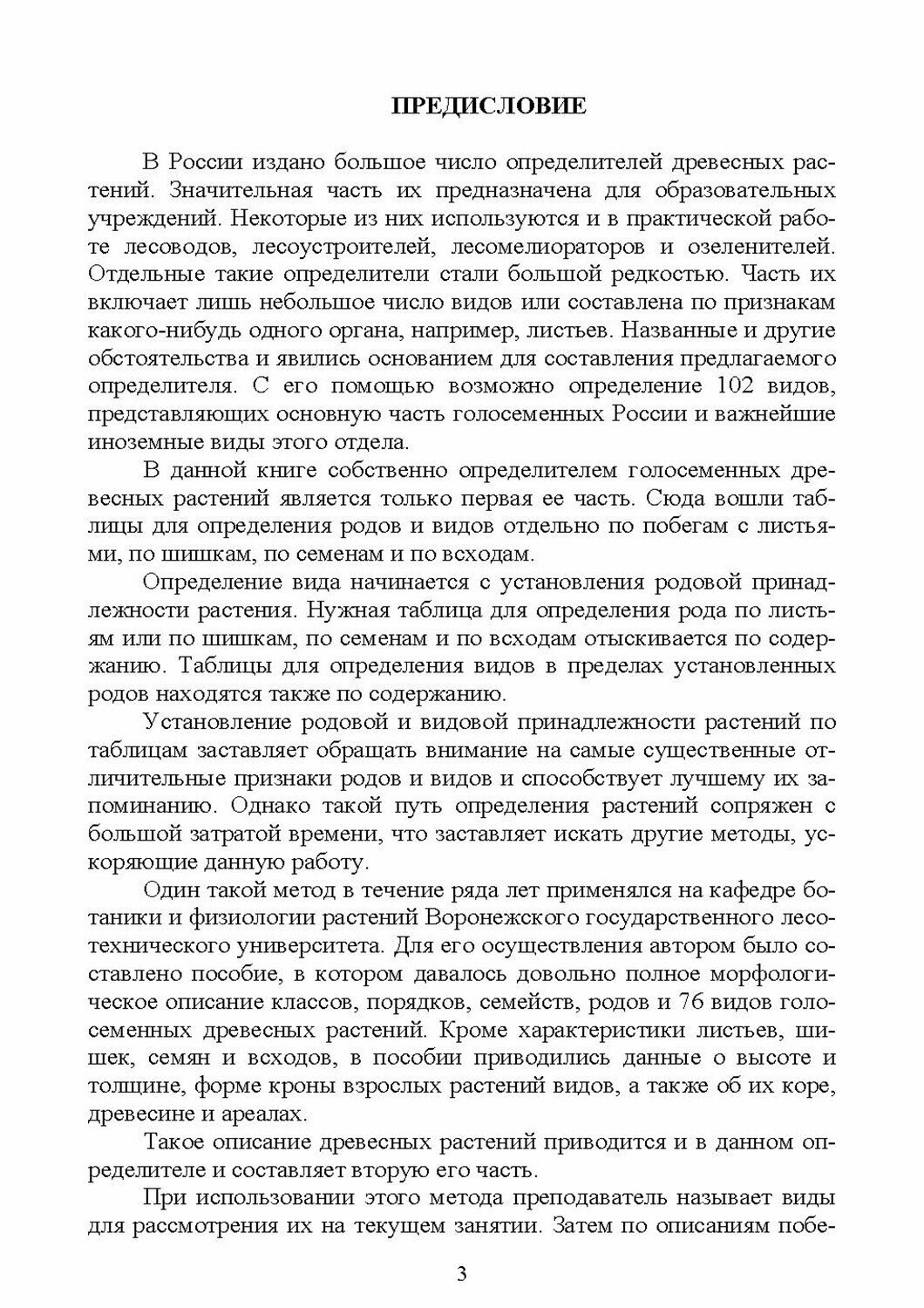 Определитель состоит из двух частей. Первая часть включает таблицы для определения родов и видов голосеменных древесных растений по побегам с листьями, по шишкам, по семенам и по всходам. Во второй части дается морфологическое описание классов, порядков, семейств, родов и 102 видов данного отдела. Определитель иллюстрирован черно-белыми рисунками и цветными фотографиями.Определитель предназначен для студентов техникумов и колледжей, обучающихся по специальностям «Лесное и лесопарковое хозяйство», «Садово-парковое и ландшафтное строительство». Он будет полезен также лесоводам, озеленителям и всем интересующимся древесными растениями.